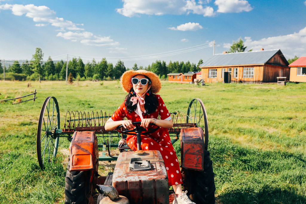 呼伦贝尔农场里的阳光明媚,一袭长裙,一个草帽,那就是一整个夏天,她就像从 宫崎 骏的动画里走出的姑娘。