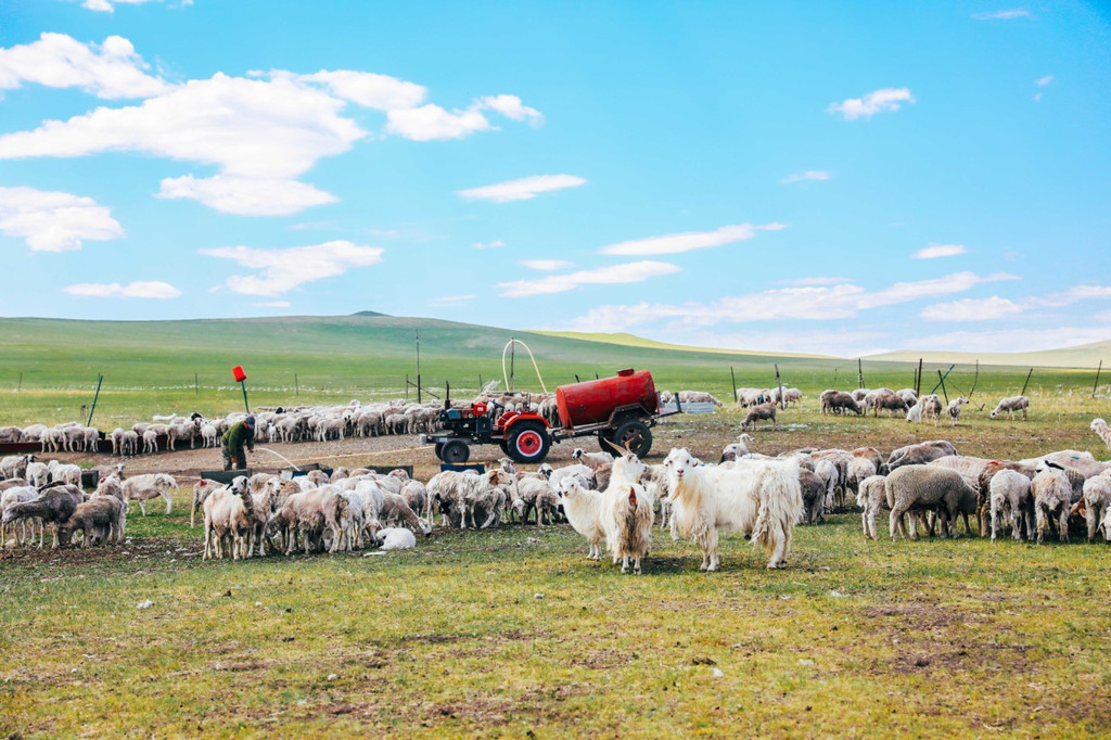 还是旅行团的大妈们厉害,冲到羊群中拍照