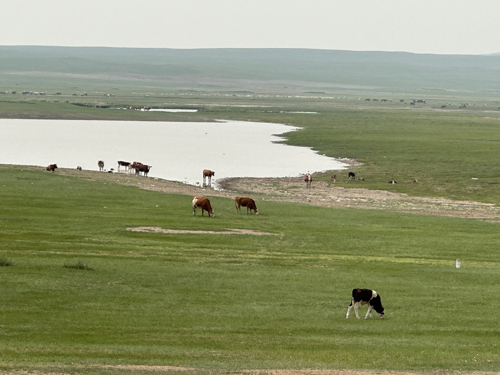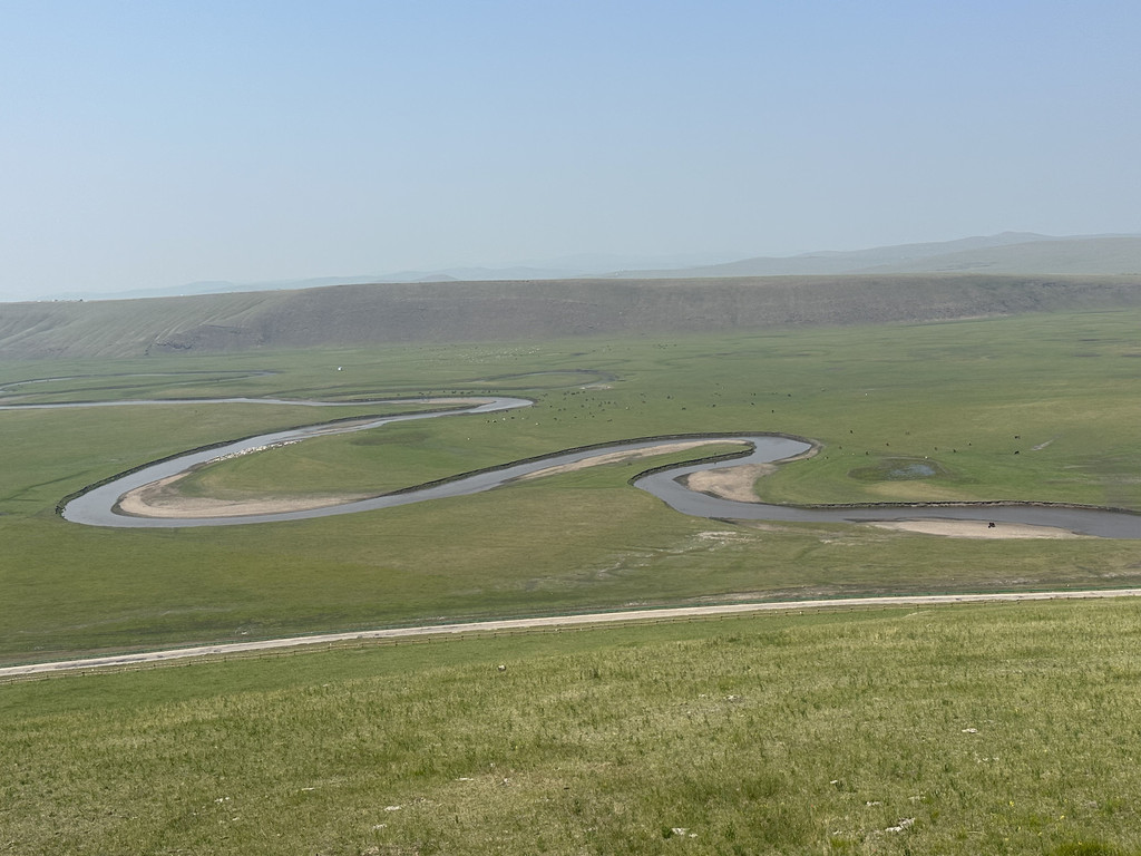 D2:上午游玩莫日格勒河,它有三个观景台,建议直接到第三观景台(制高点,可看莫日格勒河全貌),但是需要爬比较多的台阶。第三制高点无论在日出和日落时分,还是在鲜花满地的夏季由莫日格勒河衬托的多彩多姿。第三高点下山下面就傍着莫日格勒河,沿着河边有一片开阔的空地,牛羊通常来此休憩饮水。