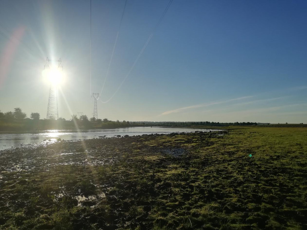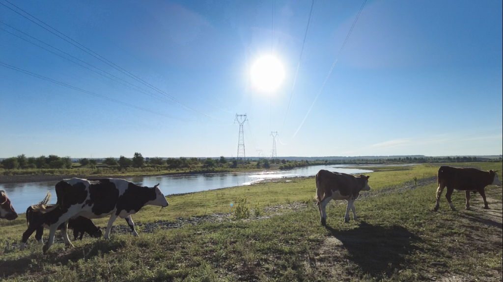 来到河堤脚下,跨河的高压线扑面而来,应当是来自80公里外伊敏煤田的火电高压输电。