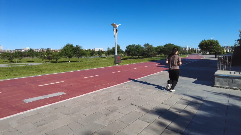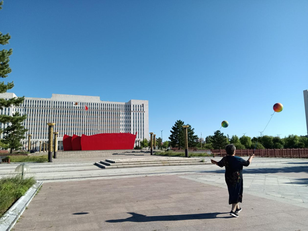 呼伦贝尔市政府驻地设在海拉尔区,就在伊敏河右岸,有市民在广场上健身,
