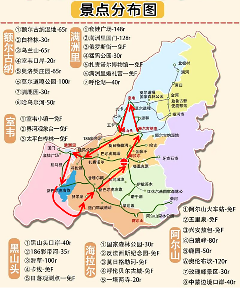 路线图如上,行程1400公里,总账详《吃住行人均4500元,我的七月南京——呼伦贝尔之行成本分析》