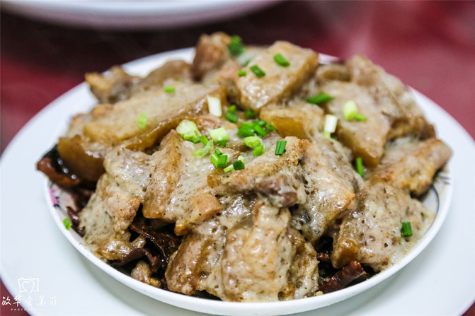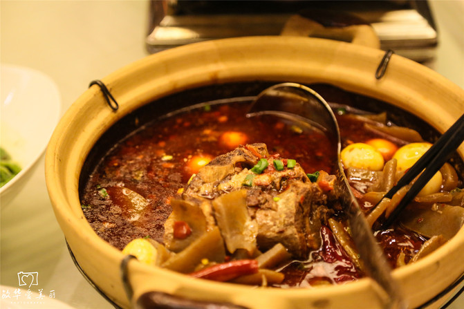 取自新鲜猪的筒子骨文火慢炖至汤汁变奶白。