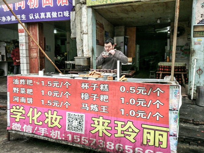 向东街上还有新鲜现炸的糁子粑、油炸粑、杯子糕等,