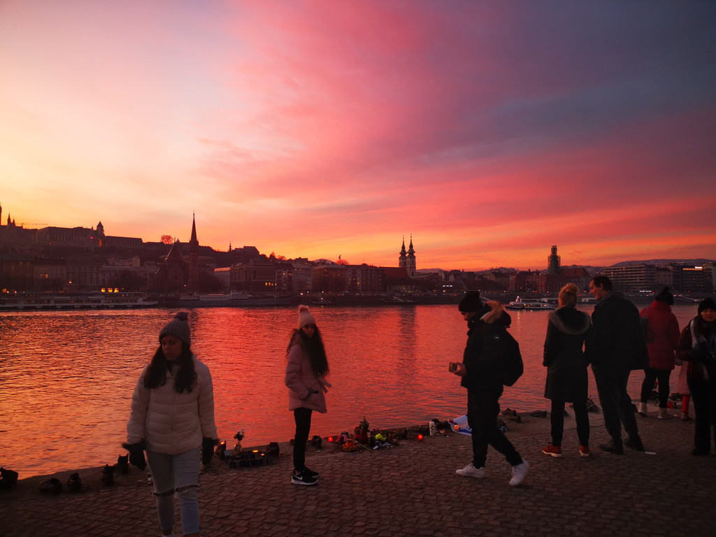 9,历史的回想:非常建议大家在傍晚的时候去“多瑙河的鞋子”那里去观赏多瑙河夜景,晚霞稍纵即逝,大家一定要携着自己爱的人,两个人挽着手一起见证一次多瑙河的晚霞,美的不可方物,真真让我联想起了星爷的大话西游,七色云彩的桥段了。多瑙河的鞋子,夕阳如血下,一排纪念二战死难者的鞋子,让人对往昔那段不堪回首的记忆感到痛心,多少人在战争中家破人亡。