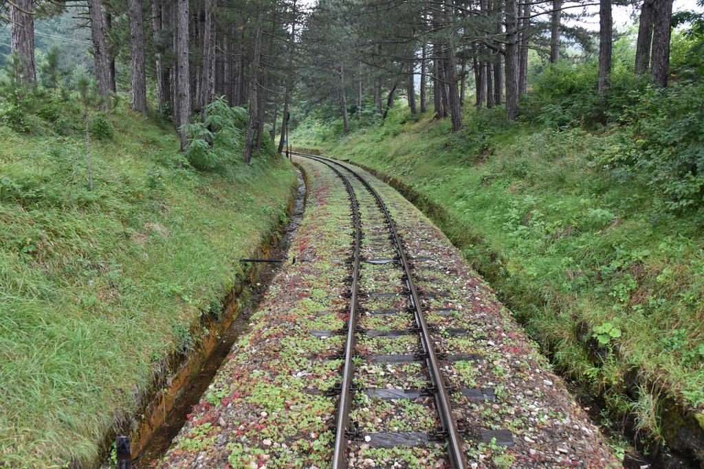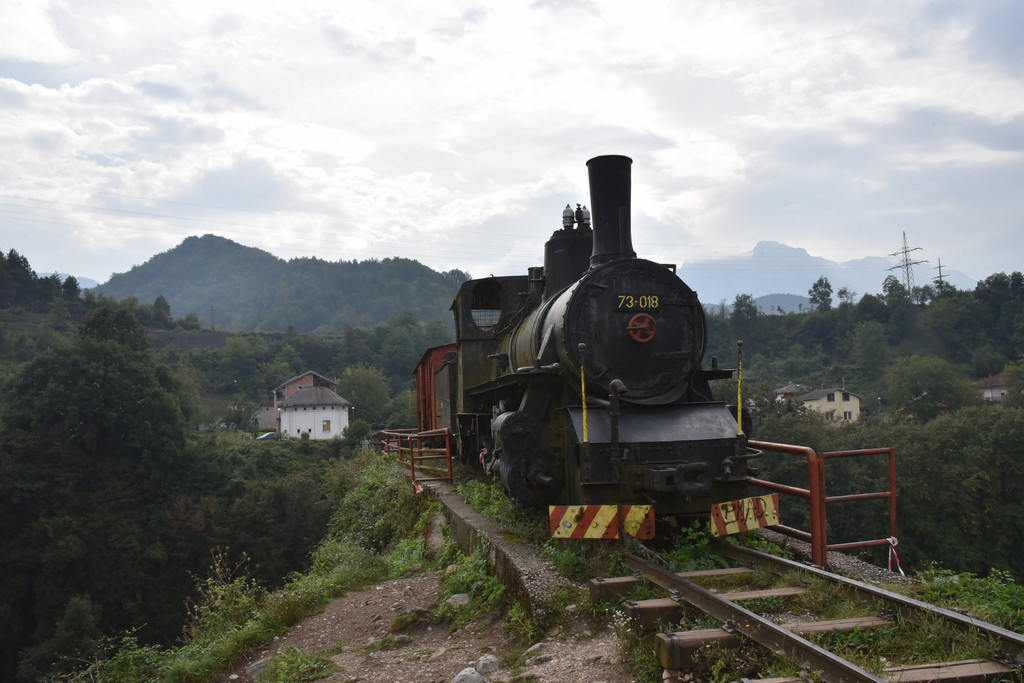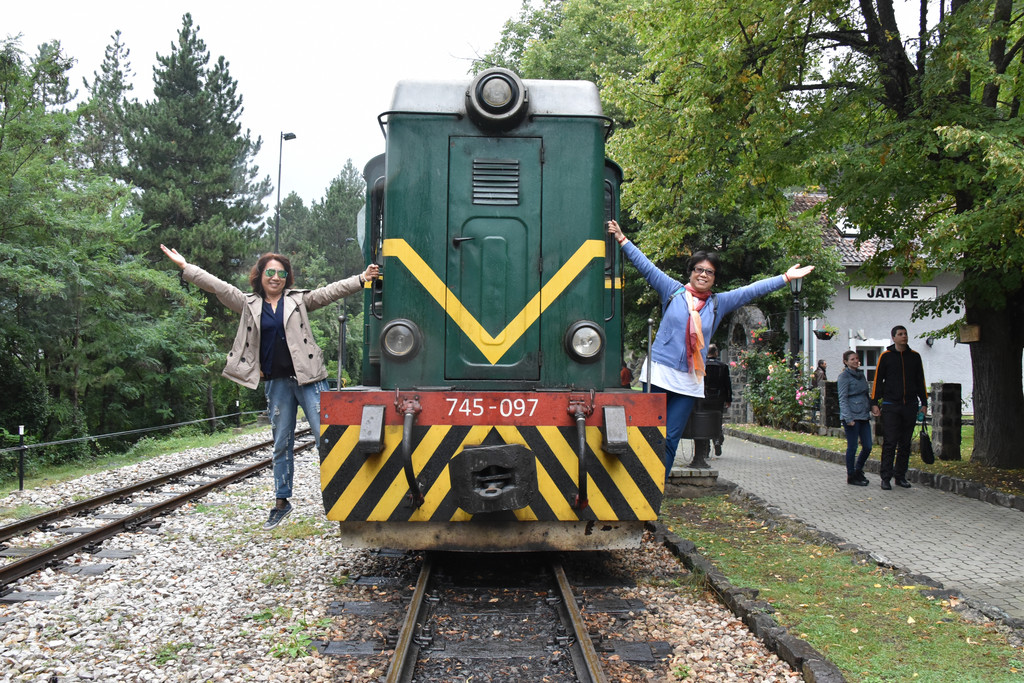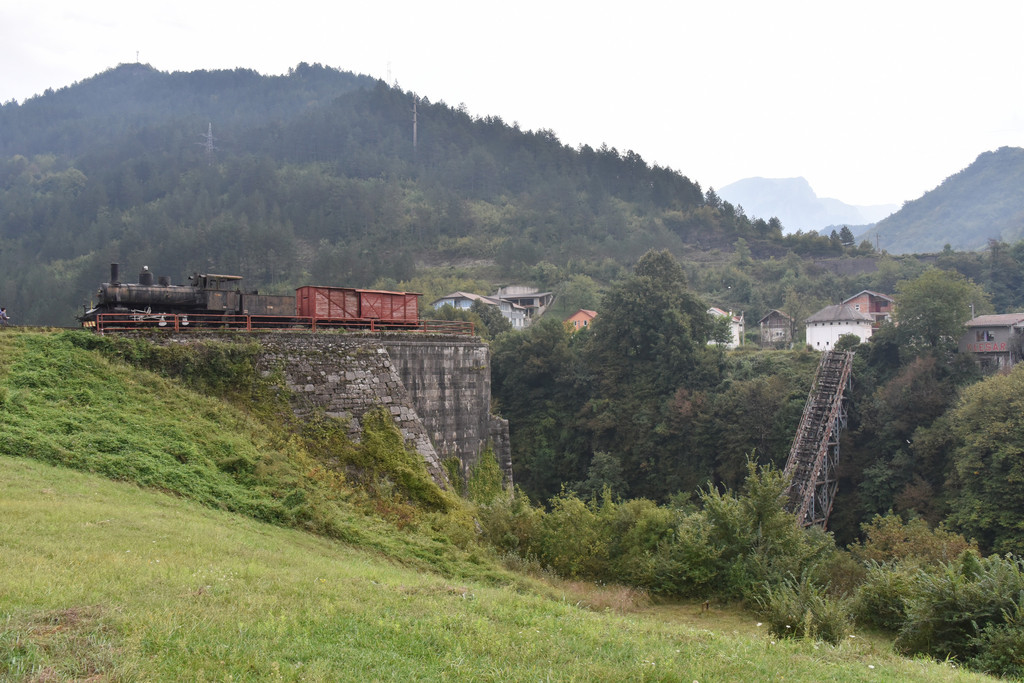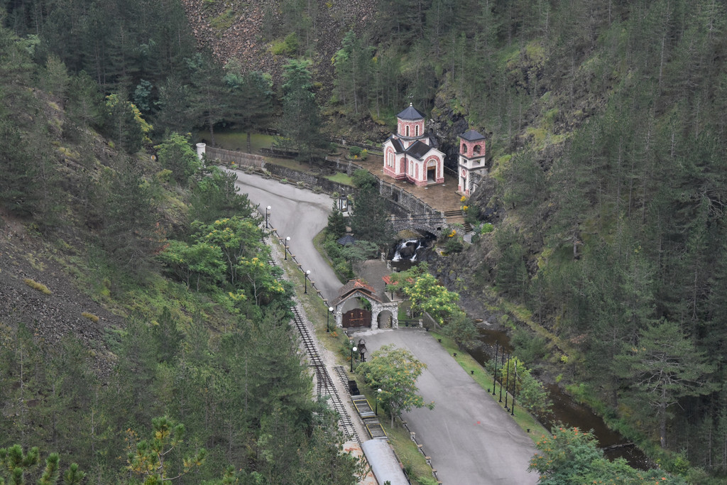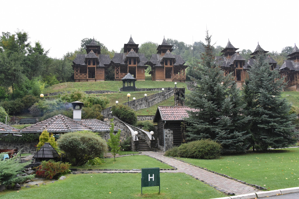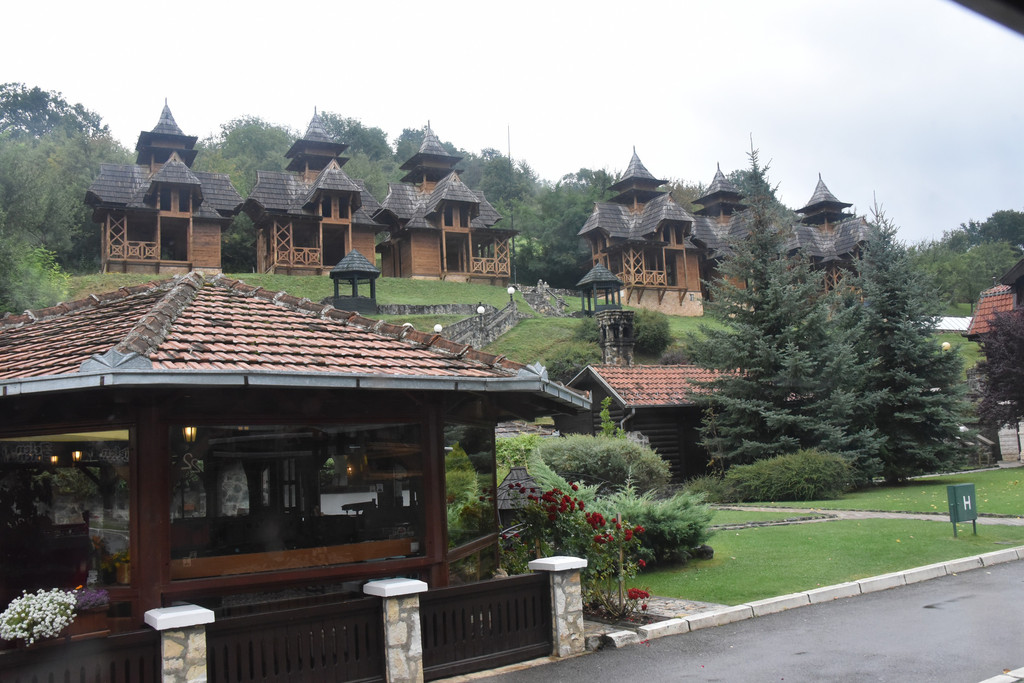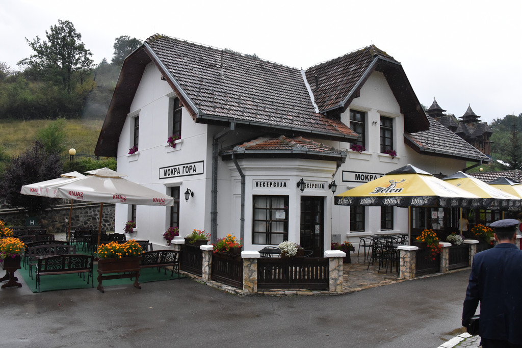 逐渐进入山区,中午1点多到达兹拉蒂博尔的森林小火车站,这里有一条铁路称Sargan8铁路(8字型铁路),是因为它在山中穿行时走了一个8字,这条铁路建于1921年,全长15.5公里,运行期间要穿越10座桥和22条隧道,过去是山区连接塞尔维亚的主要运输干线,1974年改造成旅游铁路,我们预定的上车时间是下午2点,此时稍微有些早,但是怕赶不上火车还不能先吃午饭,车站附近逛逛,这个小站建在山坡上,通过一个上山的小小隧道走上来,小站旁边的山坡上是一排一排很有特色的木头小屋,这里也是2004年拍摄电影《生命是个奇迹》的外景地保留下来的,现在称为“木头村”。