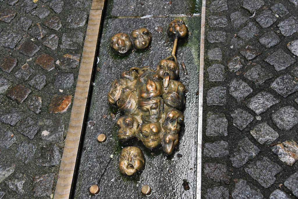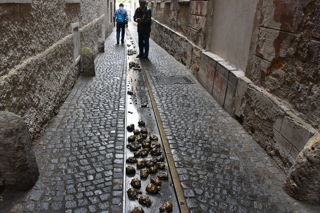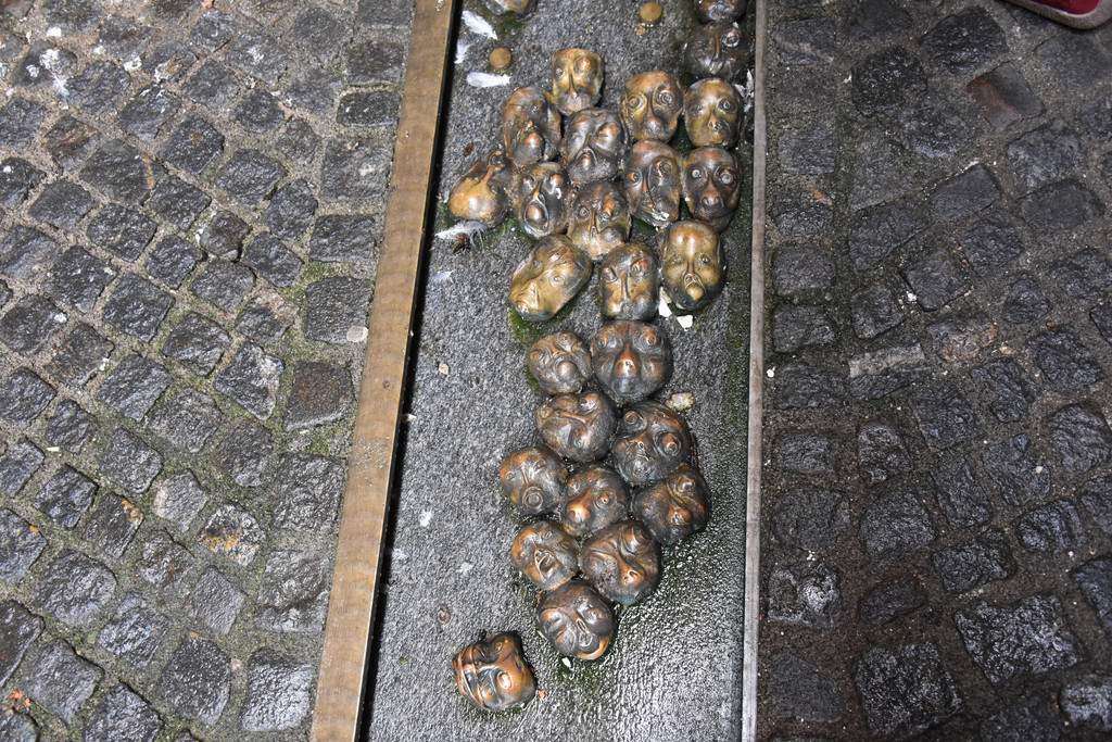 仔细看这些都是些小的人头,有的清晰,有的模糊抽象,再注意一看原来这里有很多,在一个铜制的长条中,沥沥拉拉的一段密集一段稀疏地排列直到这个胡同口像是表示历史长河,每个清晰的头像都是痛苦状,每个抽象的都是扭曲的,这是地狱吧?问过导游,这是2009年建成的为纪念那些死难的人。这个非主流艺术中心连纪念碑都做得那么有个性。