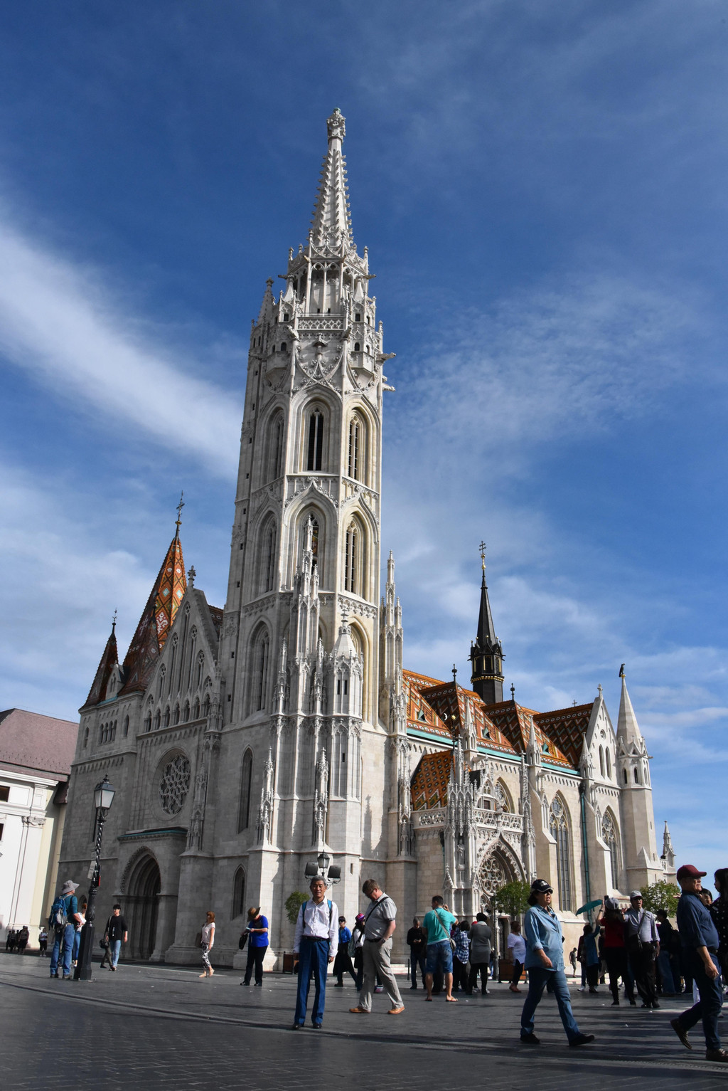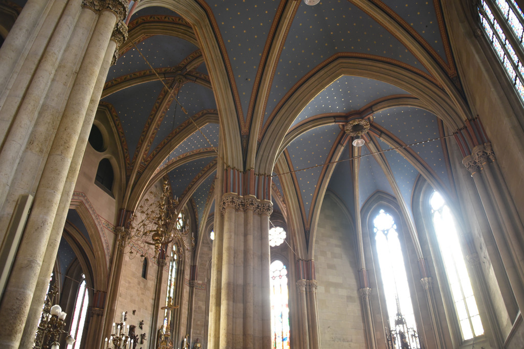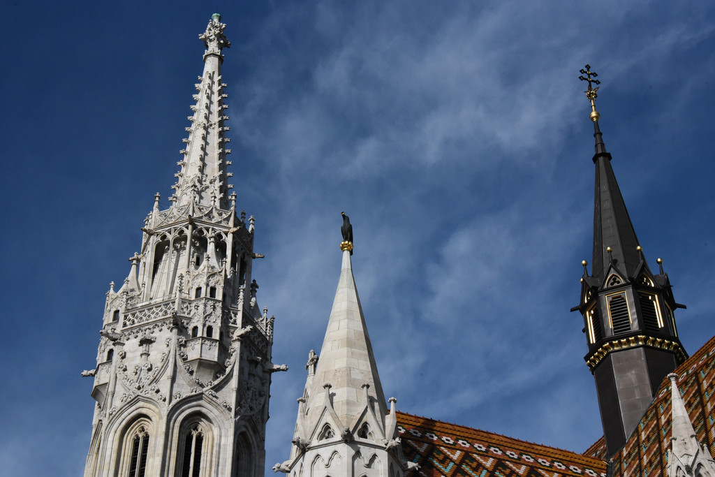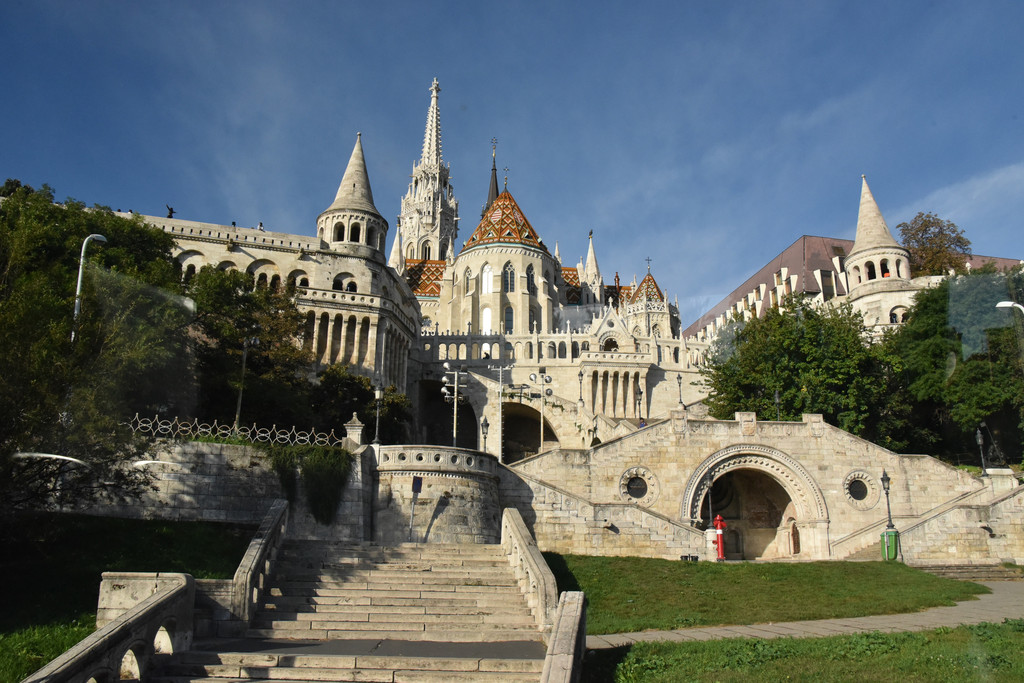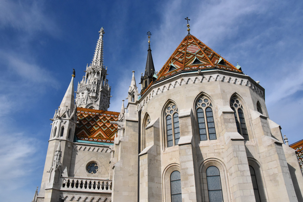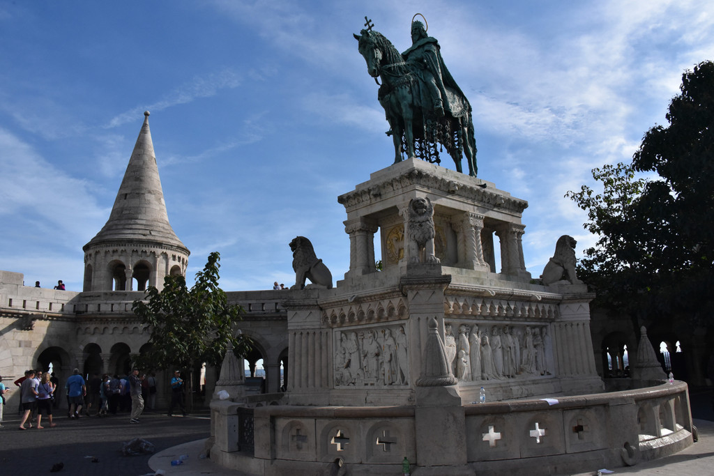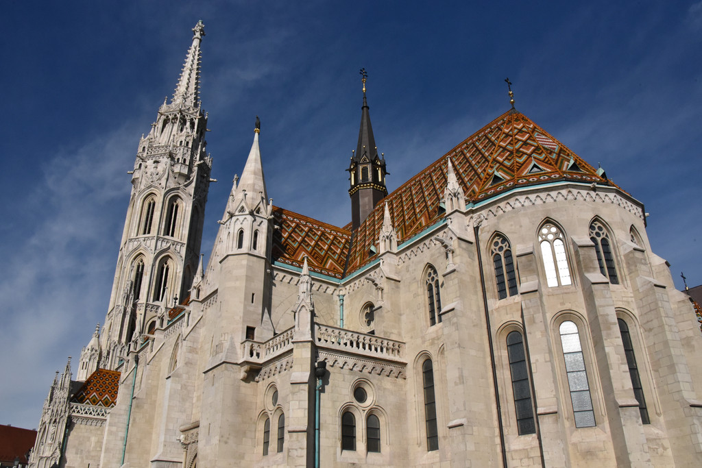 国王雕像对面的是马加什教堂,13世纪末建成的天主教堂,15世纪的马加什国王在教堂建筑上加了哥特式尖顶并在此加冕,称马加什教堂,因匈牙利历届国王都在此加冕,又称为加冕教堂,16世纪被入侵的奥斯曼帝国损毁并改建为清真寺,1686年哈布斯堡收复了这里重新改建为天主教堂,奥匈帝国弗朗茨约瑟夫和他的皇后(茜茜公主)也曾在此加冕成为匈牙利国王和王后。