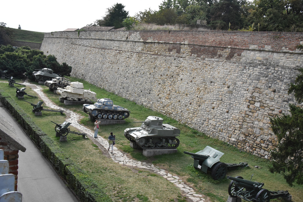 在贝尔格莱德市内有一个著名游览地,卡莱梅格丹城堡,由石头建成,要塞的防御工事最早建于凯尔特时代,后来罗马人曾在此定居扩建,现在城堡主体部分建于17世纪,这里既是古代军事重地又是现代城中最大的人民公园,经过一片绿地树林后,进入城堡的外围,城墙的上下平台和空地中摆满了各种口径的年代不同的大炮和坦克,这些都是曾经参加过一战或二战的武器。