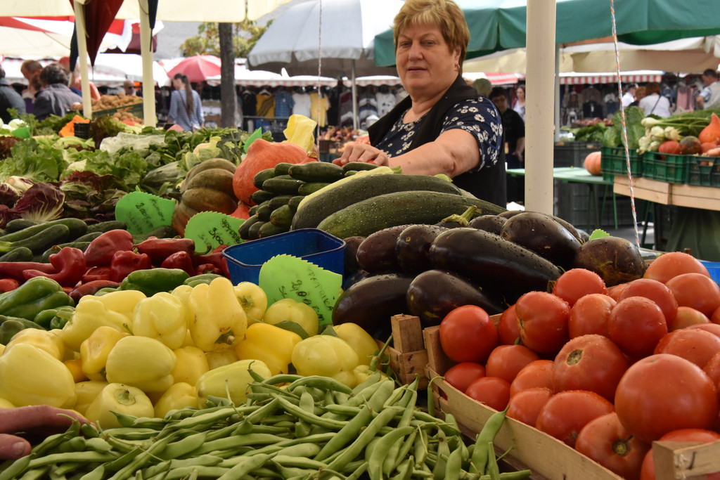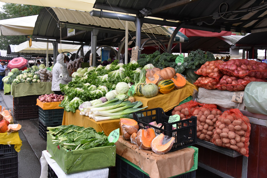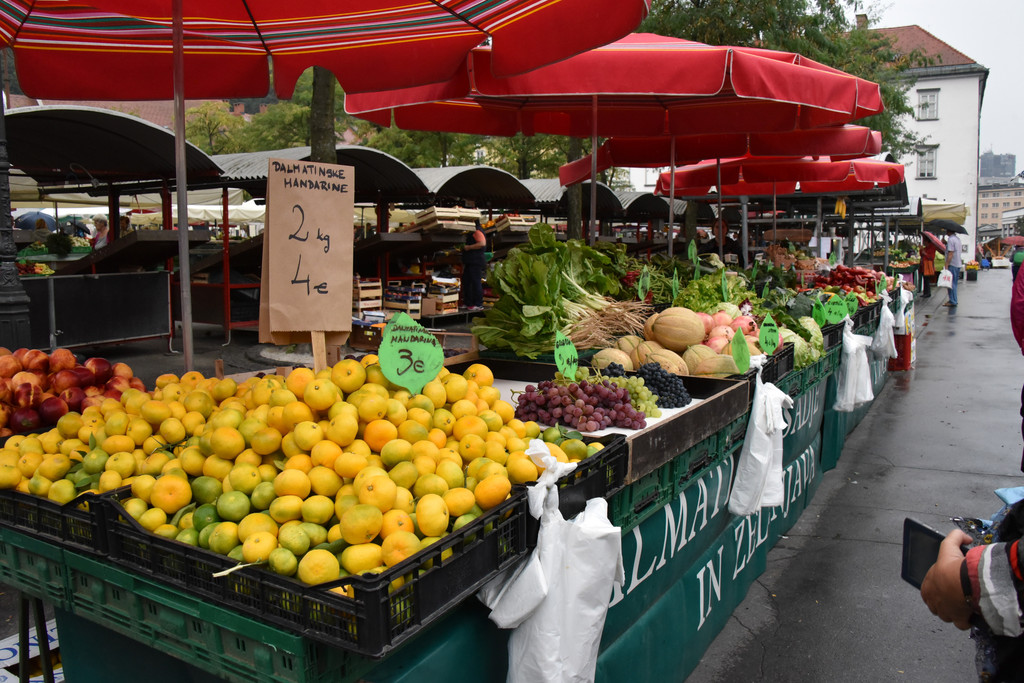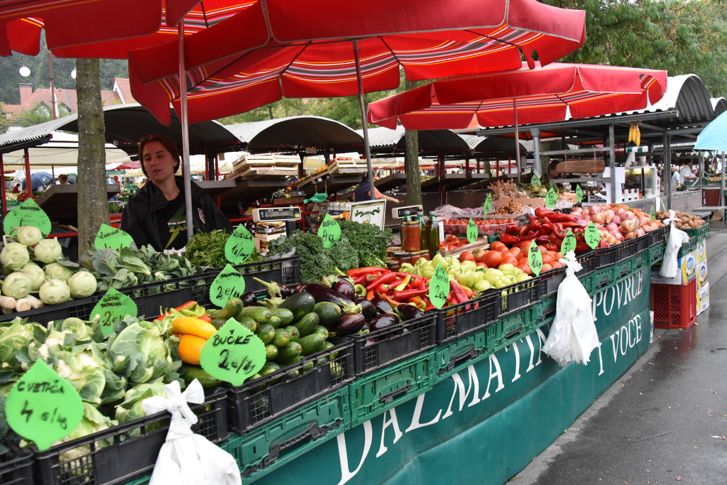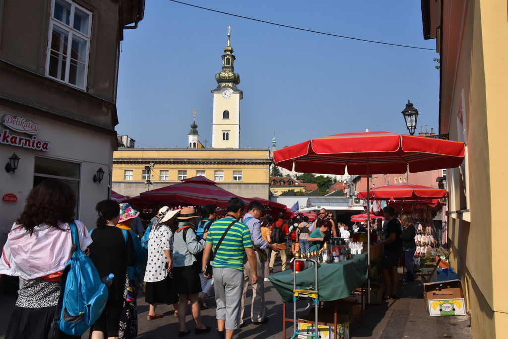 桥的左侧是城市集市,有些类似萨格勒布的多拉兹市场,现在是清晨,颜色鲜艳的新鲜蔬菜已经摆上,