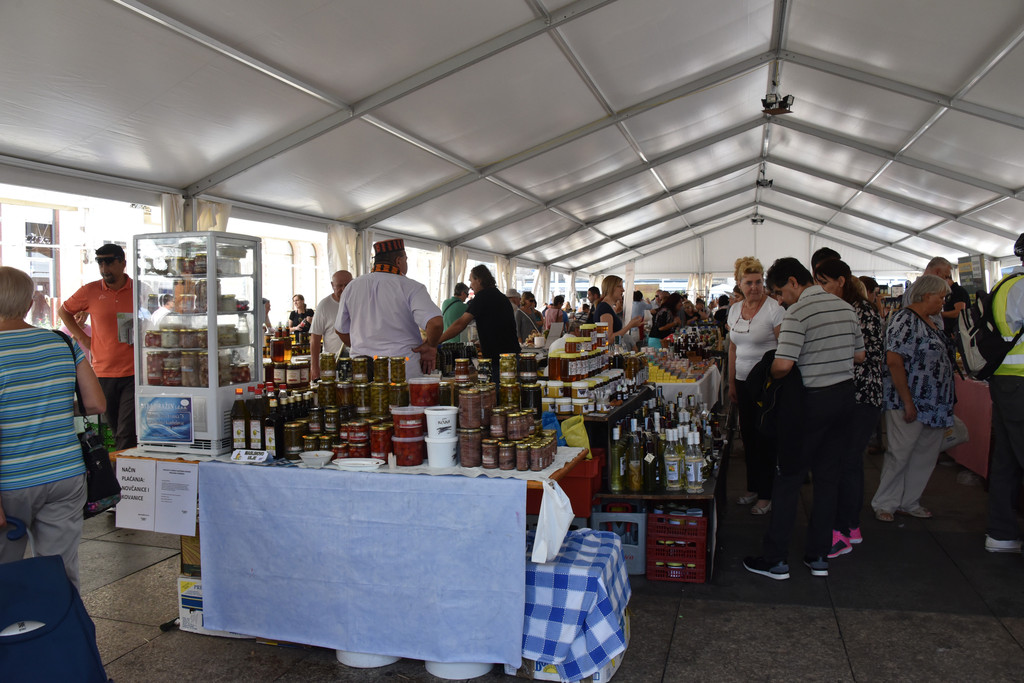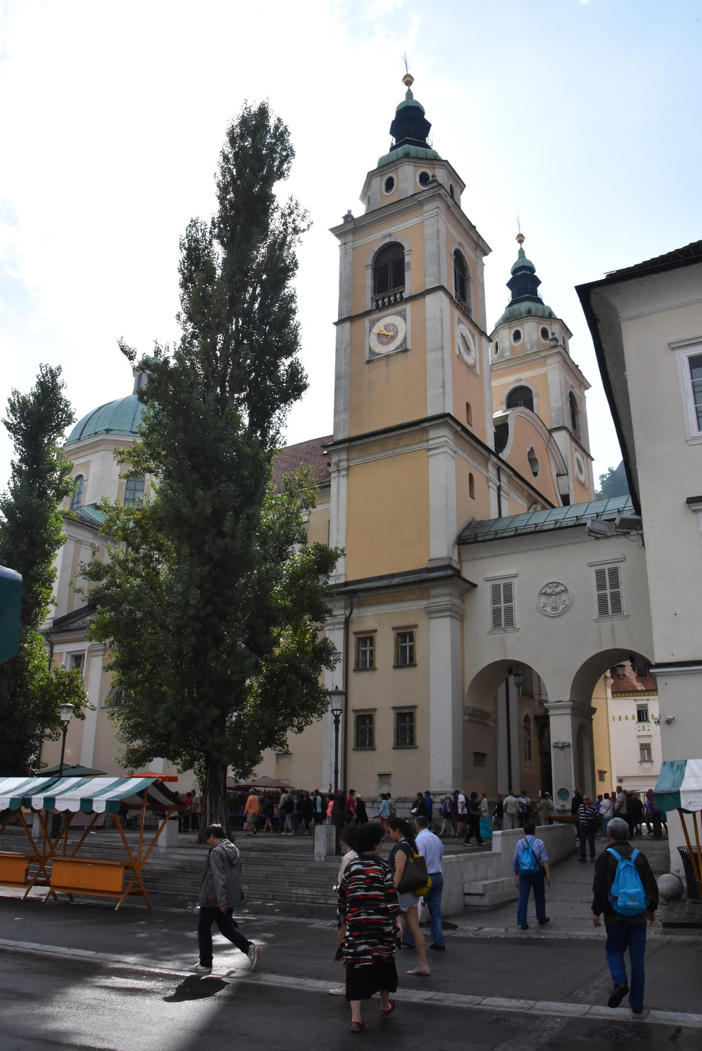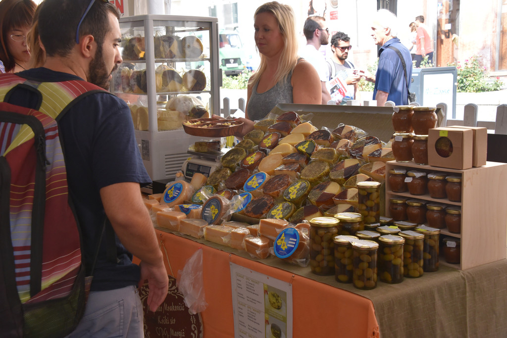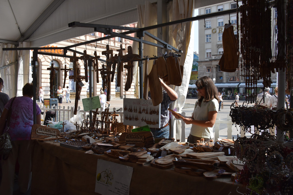桥的左侧是城市集市,有些类似萨格勒布的多拉兹市场,现在是清晨,颜色鲜艳的新鲜蔬菜已经摆上,