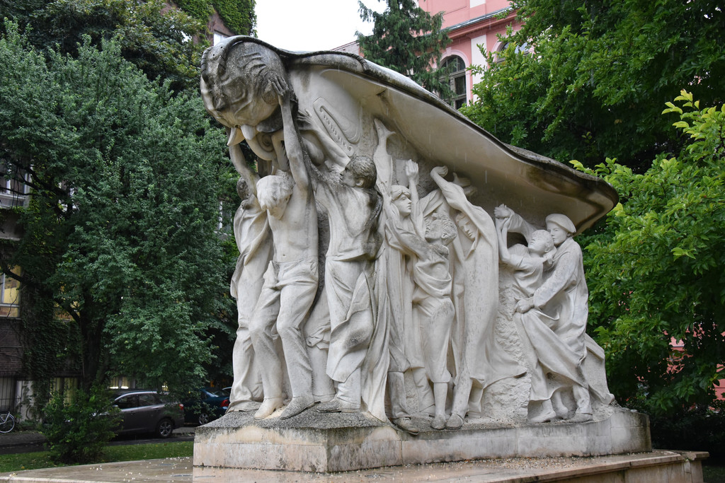 街角绿地中有一个雕像,称国防军纪念碑,纪念1848年匈牙利民族革命的胜利。
