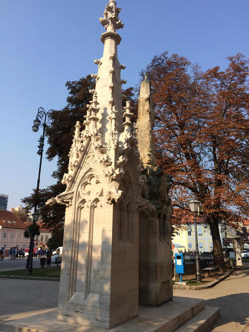 两年前的渔人堡游览到此就结束了,这次才刚刚开始呢。向南走就是圣三一广场,这里有一座纪念碑纪念17世纪在欧洲流行的那场黑死病中死难的人。