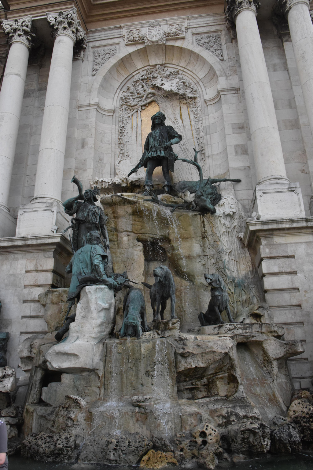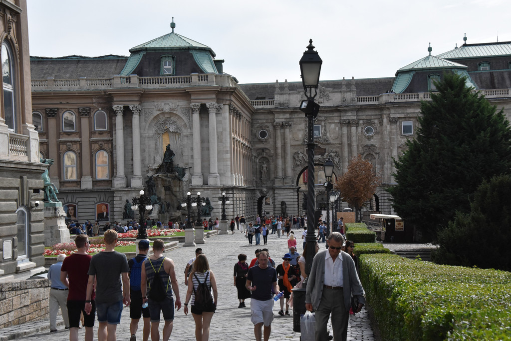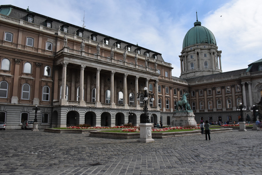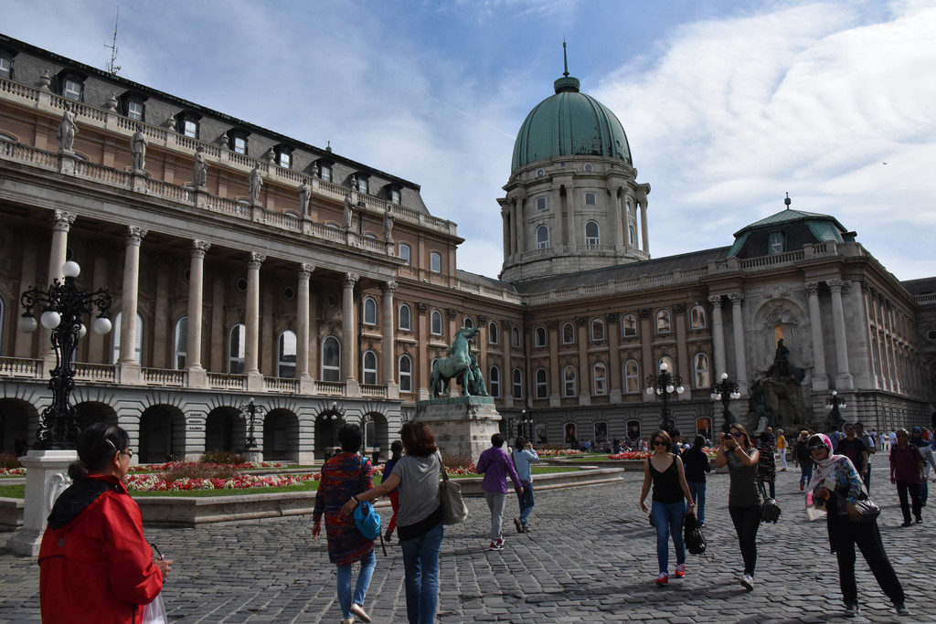 往前走一个拐弯处,回头看到里面的雕塑,问问导游,这是皇宫,因为我们的线路上没有体现,所以没有带我们参观,来都来了哪能错过,再说我们是旅行社领导下的自由行模式,哪能拉空,全体左转进入皇宫大院,这是城堡山最大的一个建筑,是匈牙利历代皇帝居住的地方建于13世纪,奥斯曼帝国土耳其占领期间被损坏,十九世纪中期开始重新修复成为新巴洛克式,二战期间又有损毁,现在被开辟为历史博物馆和画廊,皇宫一侧的雕塑是马加什狩猎图,