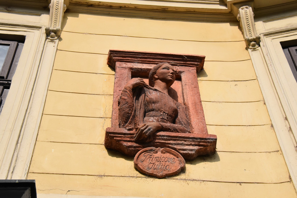 有故事说普列舍文一次去教堂的路上,遇到了一位女子尤利娅,顿生爱意,无奈她已有丈夫只能心中暗恋,常常趁她去教堂时见她一面。故事是传说,但是为了让它有根有据,有人还在铜像目所能及的对面楼上专门做了一个石雕,是尤利娅正依着窗向这边张望,