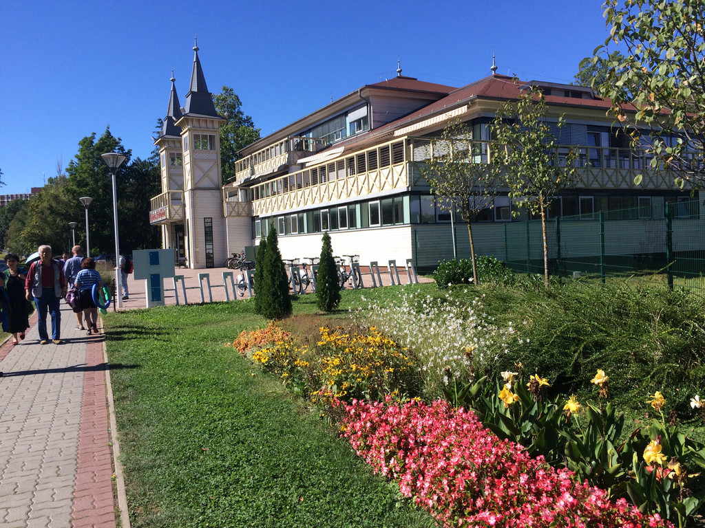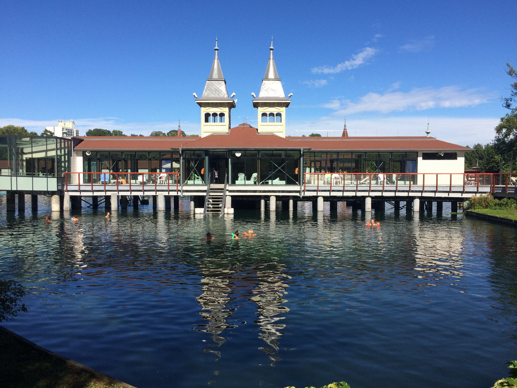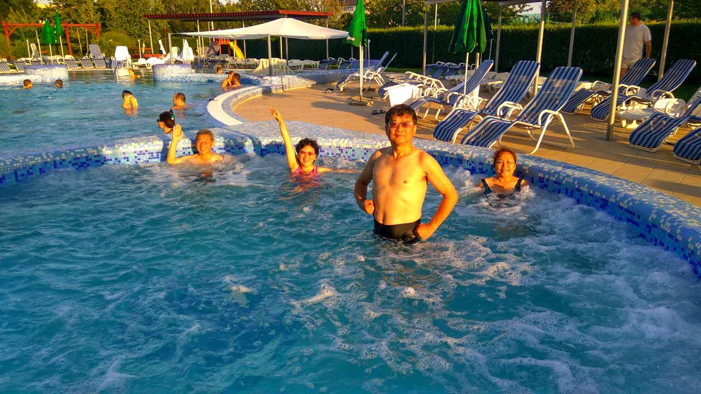 早上出发到黑维兹温泉区,黑维兹是著名的温泉度假胜地,车还没停下就闻到一股硫磺味。今天的行程有些机动,今天有两个选项,或者泡温泉或者逛街。泡温泉是自费的,逛街当然也是自费的。来到黑维兹当然要泡温泉啦,这里是世界第二大天然温泉湖,15世纪发现并开始利用的,面积47500平方米,水深36.5米,是的,没有写错,是36.5米深!湖底是硫磺黑炭层,每天产8600L热水,每28小时自动更新一次,夏季湖水33-35度,冬季水温平均25度,是非常适合度假的地方。大约有一半的人选择泡温泉,我当然选择泡泡泡。