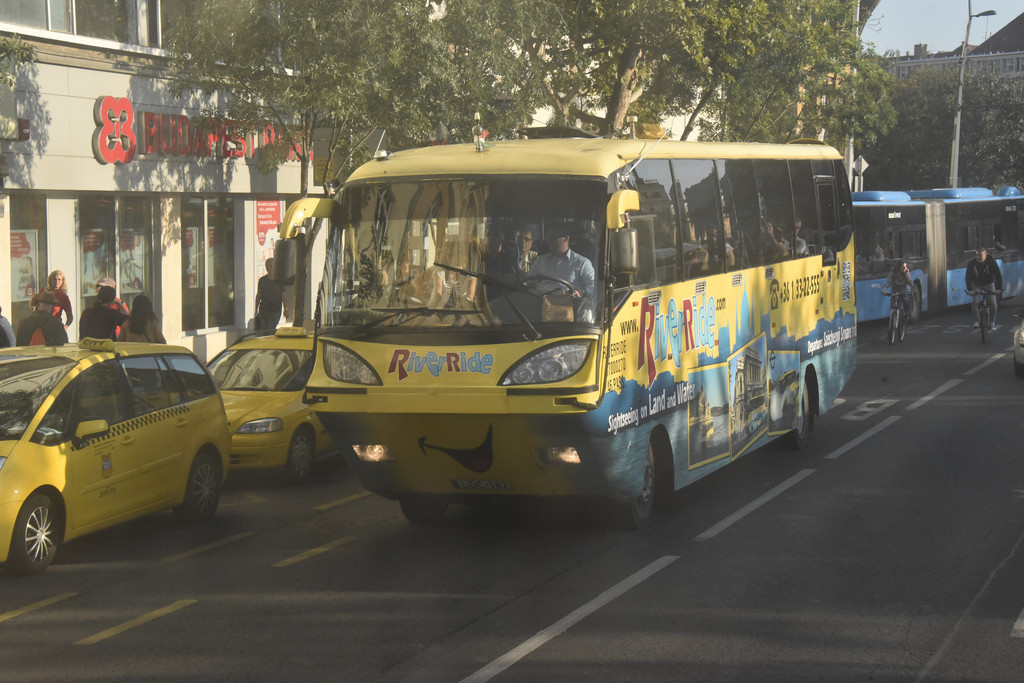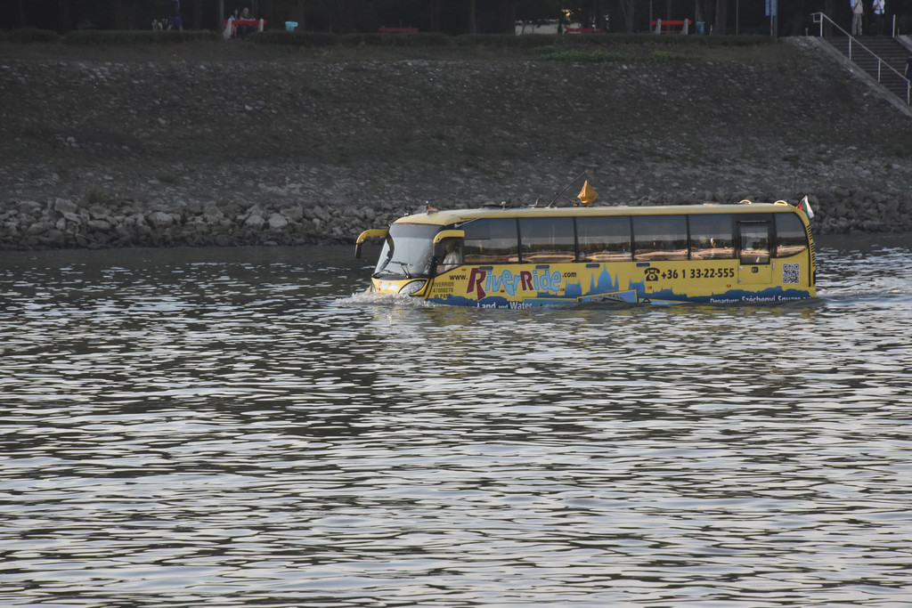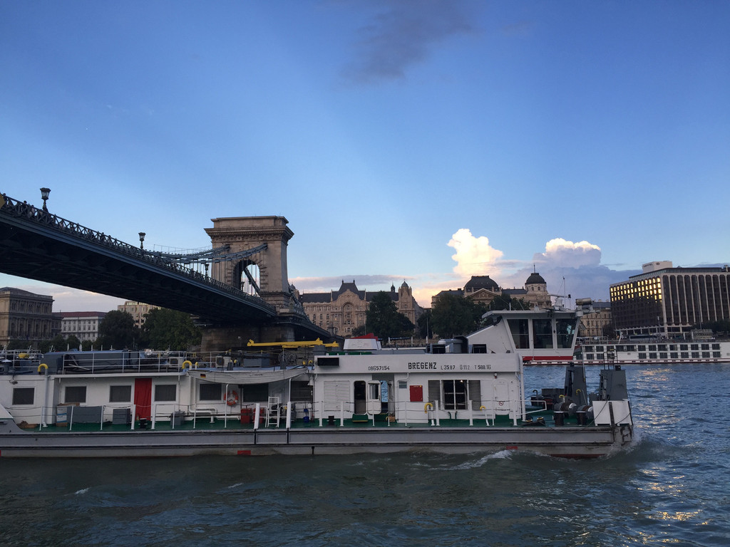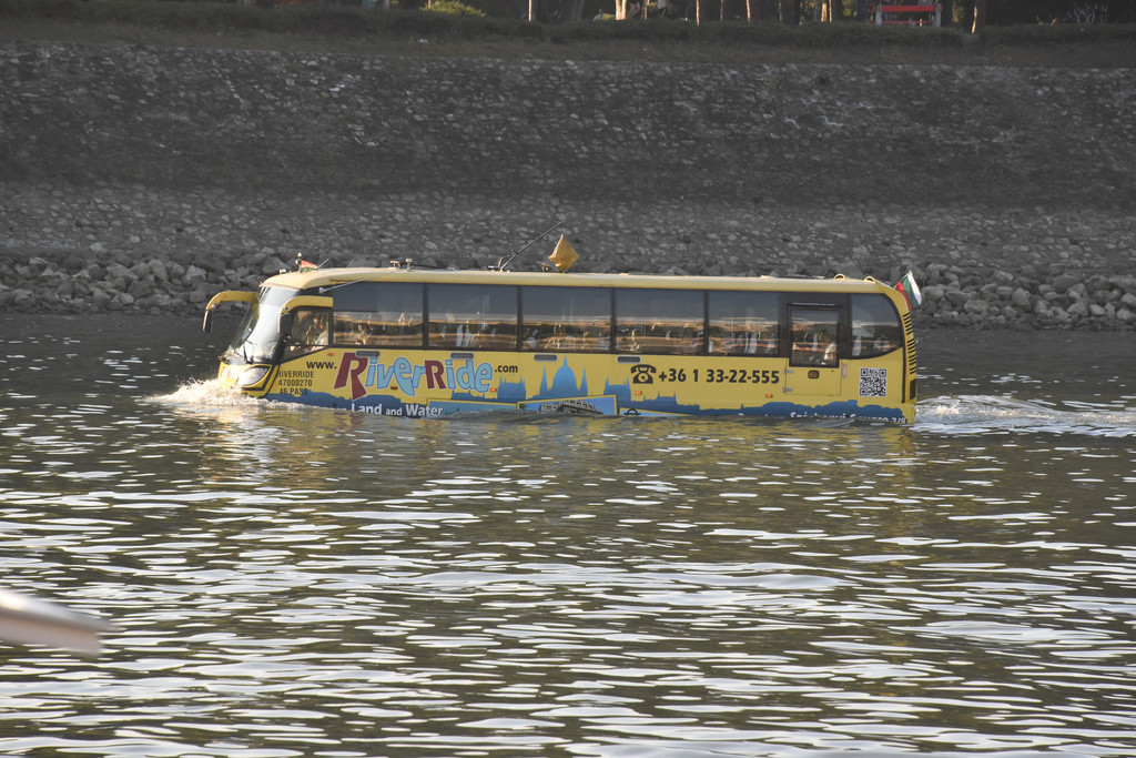 本想参加一次夜游活动在多瑙河上看看灯光下的夜景,没想到我们还是早了一个小时,没有等到掌灯时分就上岸了,不过也不遗憾,这次仔细听了一下船上的讲解,对这些桥的历史有了比较明确的了解,如果真的天黑了,也不一定能照得清两岸的照片。很满意啦。这一天累的!今天还有一次有趣的事情,看到一个黄颜色的大巴在我们车的右侧,导游介绍说这是一辆水陆两栖车,全市只有这一辆,是旅游车,它可以开到多瑙河中。