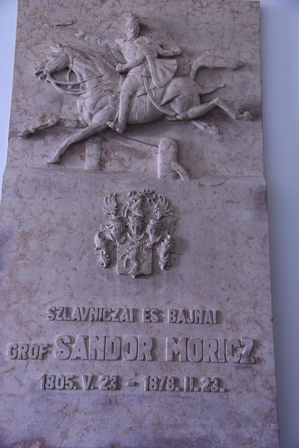 在这座桥的城堡山这头连接的就是这座城市唯一的隧道,因为唯一,所以没有名字,只是称它隧道。这是就桑德尔宫,在一面墙上看到一块纪念牌,上面写着桑德尔(SANDOR MORICZ 1805年5月23日-1878年2月23日)浮雕是一个身穿军装的人跨马飞跃障碍,这座宫殿就是以他命名的。