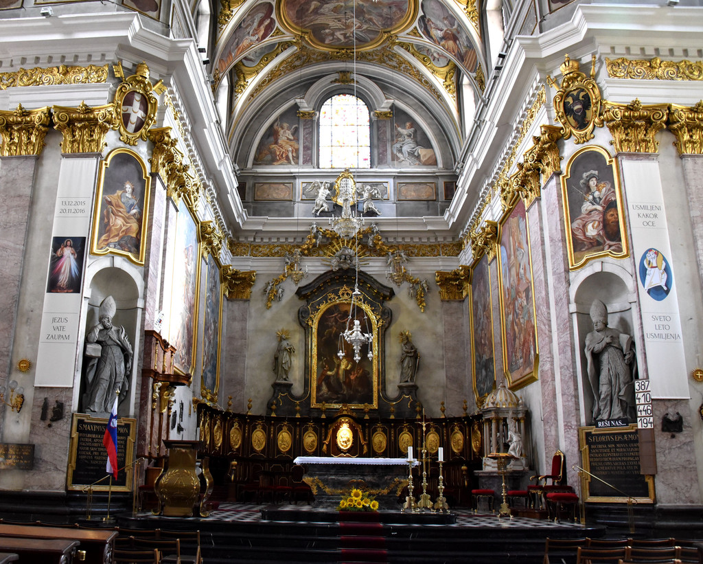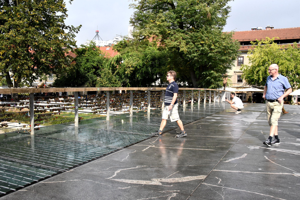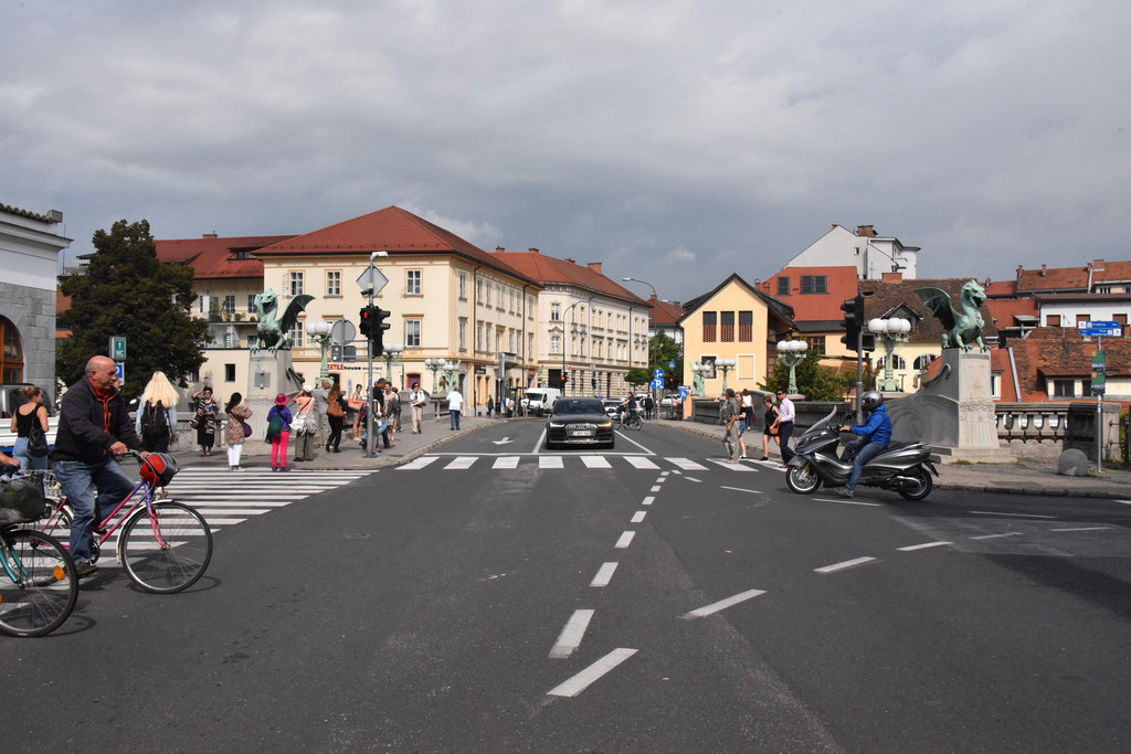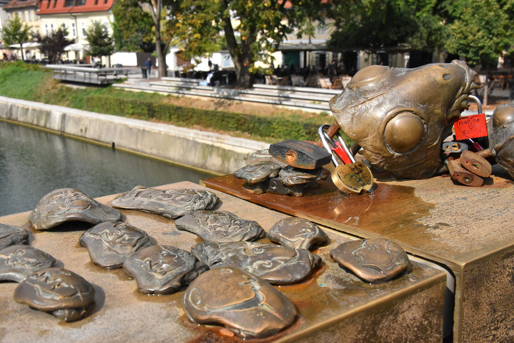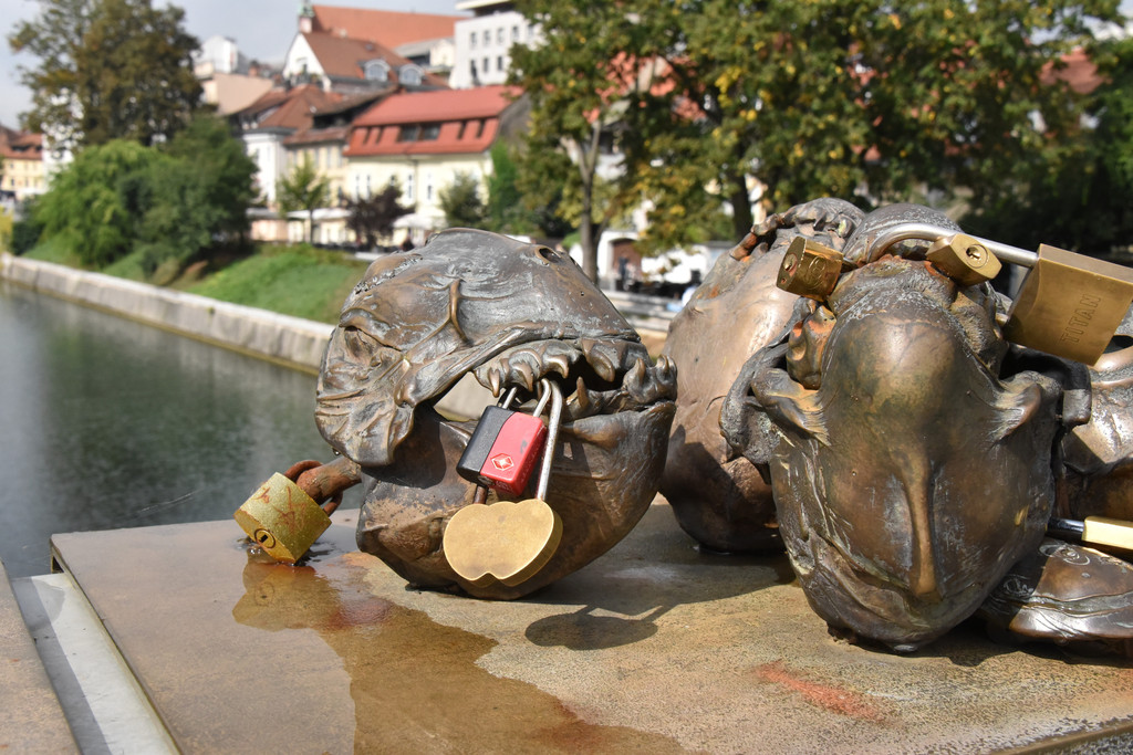 卢布尔雅那是一个新兴的城市,也是欧洲的非主流艺术中心。城市中一条河卢布尔雅那河,游览从河上的龙桥开始,龙桥是卢布尔雅那地标性建筑,桥栏杆上标着1848-1888年建成,桥头4个角各蹲着一只青铜色的长着翅膀的龙,两只利爪按住桥头,张着长满牙齿的嘴巴,两扇类似蝙蝠翅膀的翅膀呼扇着,一条尾巴盘住桥头,样子很凶。