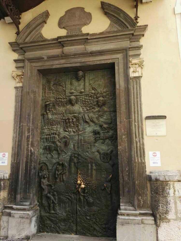 这是一个东正教教堂,1996年罗马教皇曾经来过,这个铜门就是为向教皇献礼所做。推开厚重的大门进入教堂,里面的色彩足以让人眼前一亮,金碧辉煌,与天主教教堂相比这里没有玫瑰花窗,四面墙壁布满壁画,所有凸出的部分都涂有金粉,顶部圣经故事油画具有极强的装饰性,教堂显得明亮高大。