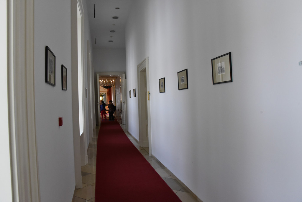 总统府不仅可以进入,还可以随意照相,一层应该是一个等候区,这里陈设简单,墙上挂着历史、货币、出土文物介绍的照片,