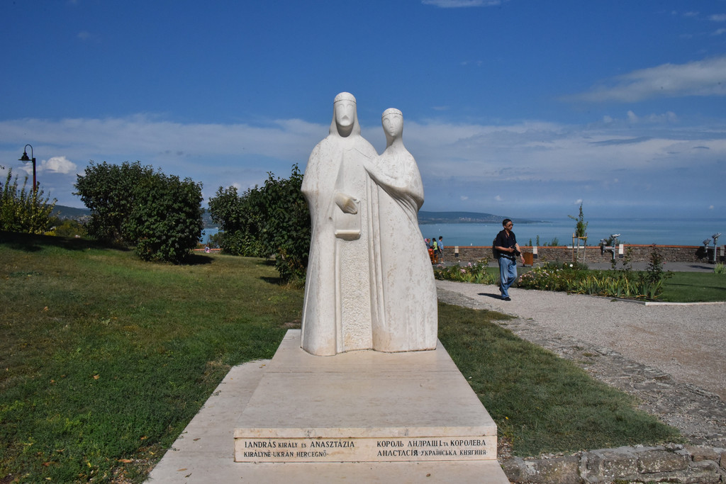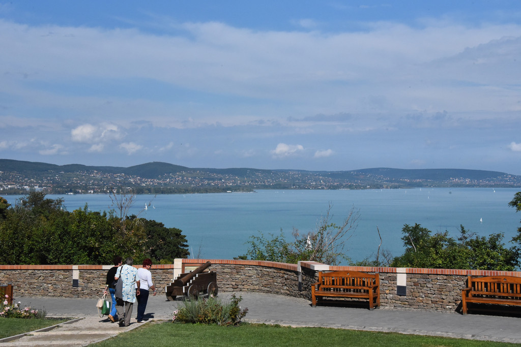 教堂面对巴拉顿湖,蓝色的湖水,点点白帆,远处的湖岸有密集的房屋,可以想见这里是热门的度假胜地。