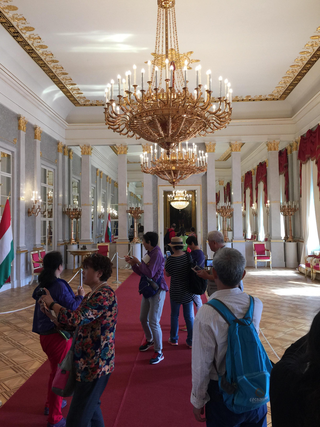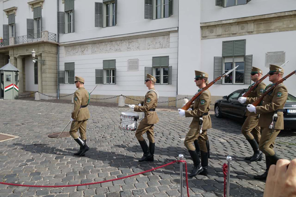 总统府!真的这么平易近人吗?这是桑多尔宫,现在的总统府,外面没有围墙,只有一块草坪,赶紧照相,突然发现总统府右边站有一些游人,他们正分批进入总统府,这是些什么人啊?