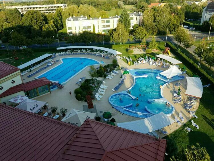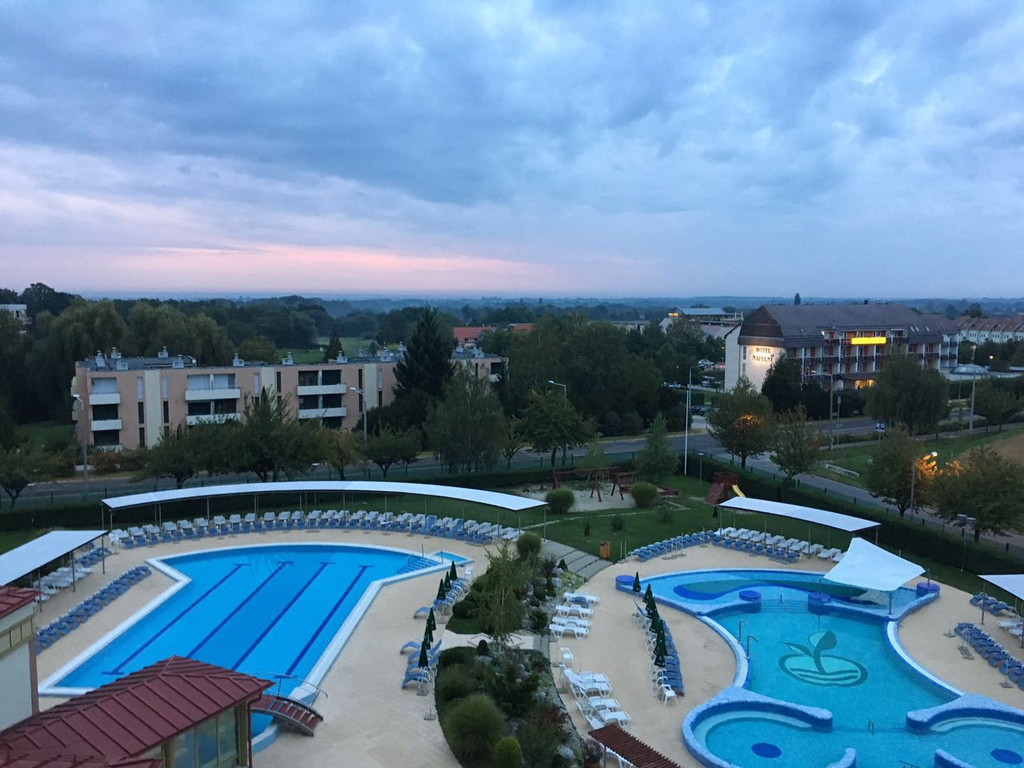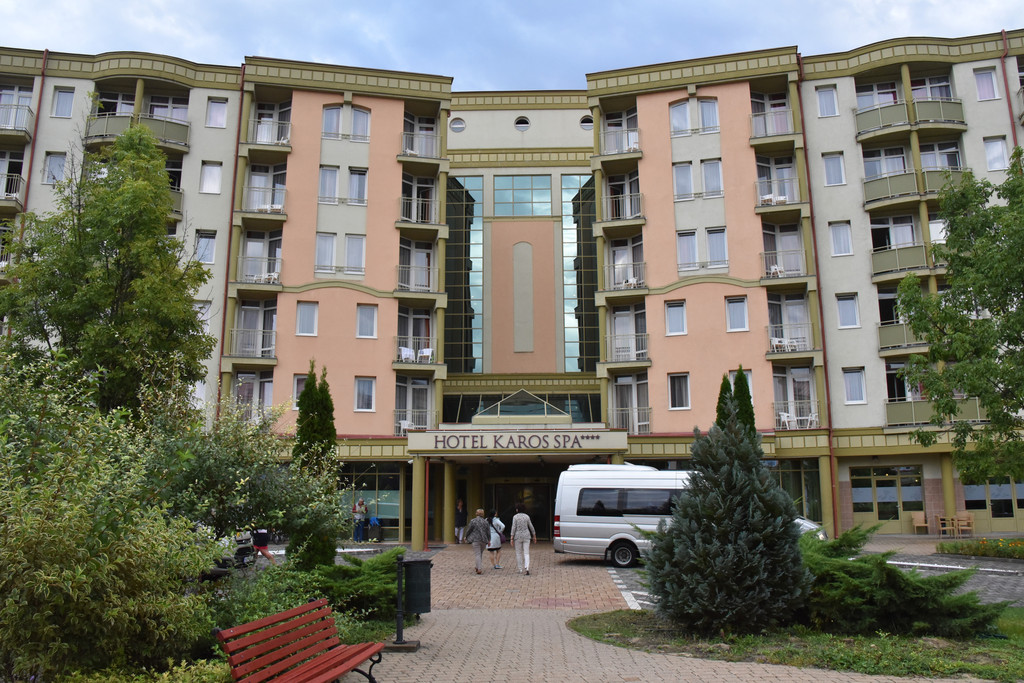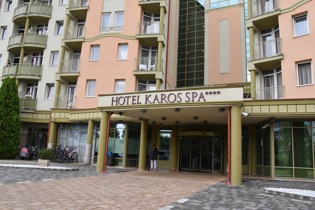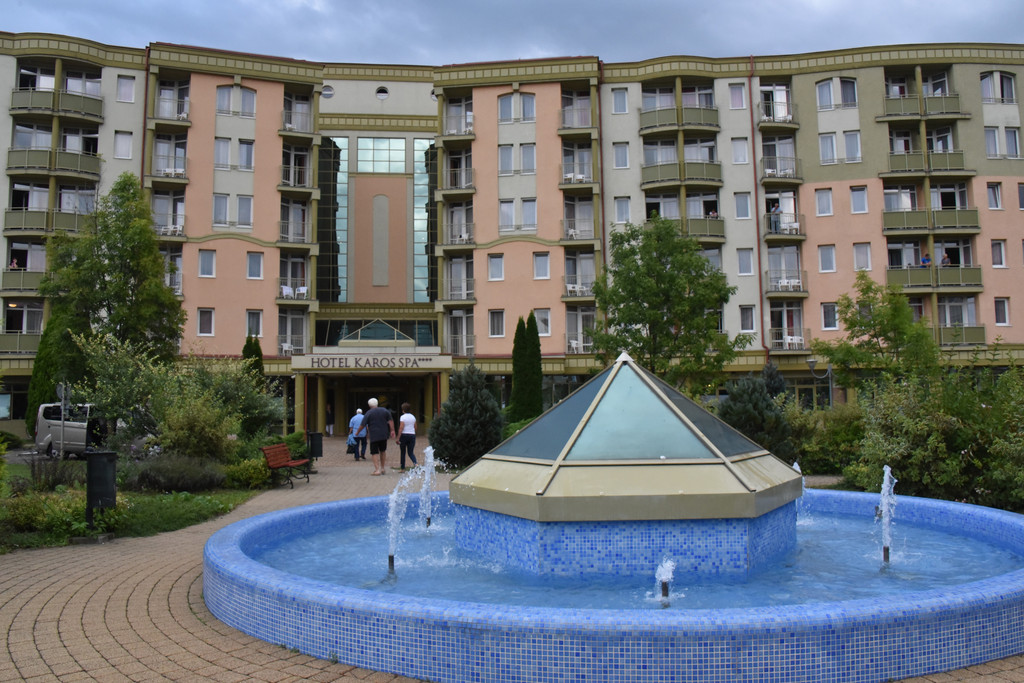 吃罢午饭(当然是中餐)我们要驱车310公里跨越国境到匈牙利的温泉城市黑维兹,路上放映着电影茜茜公主,不知不觉中已经进入匈牙利,这就是同是欧盟国家的好处。电影还没放完,大巴车已经拐入了小路,十几分钟后进入了温泉度假酒店,KAROS SPA HOTEL,