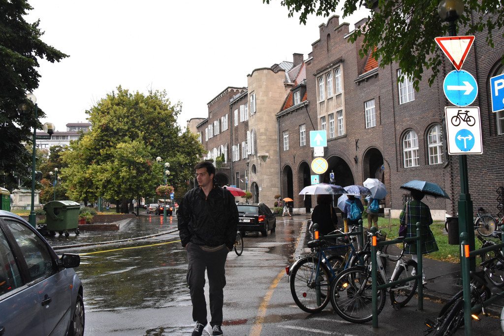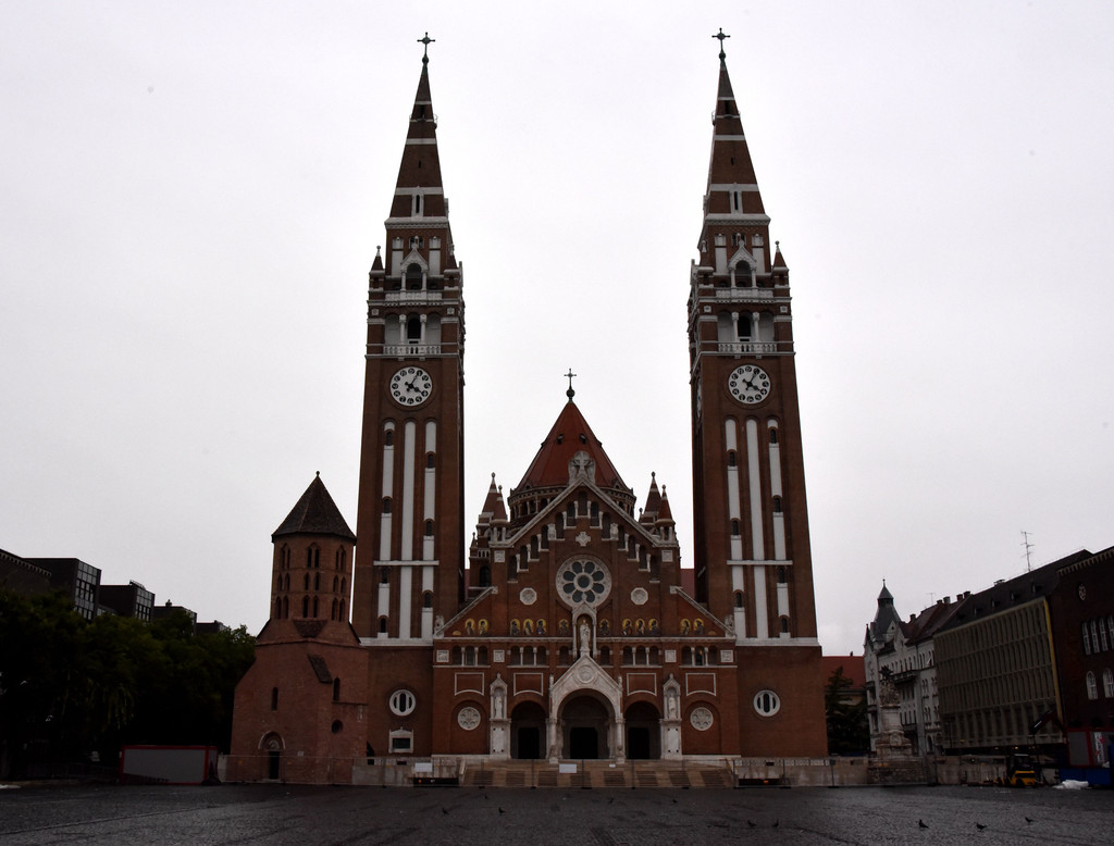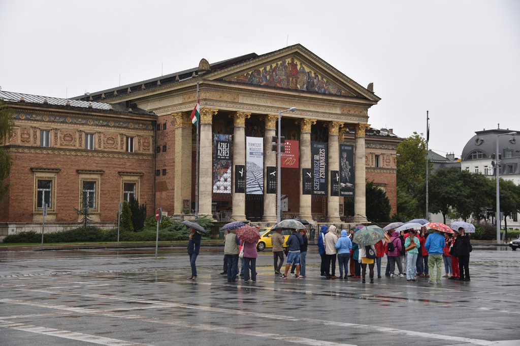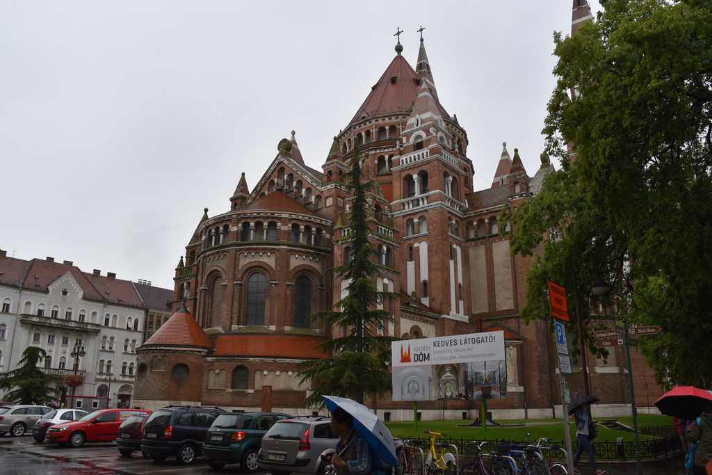 继续下面的行程,驱车180公里到匈牙利的边境城市塞格德,塞格德是匈牙利的第四大城市,面积280平方公里,人口17万(让人瞬间想到北京的天通苑,常驻人口有28万之多,这仅仅是昌平区中的一个住宅区!记住在欧洲千万别拿中国说事儿!)。这里有匈牙利的第二大河流-蒂萨河。16世纪匈牙利受到奥斯曼帝国的入侵,曾迁都至此,在哈布斯堡的欧根亲王带领下打败了奥斯曼,将匈牙利解救出来,1848年,匈牙利反对哈布斯堡的独裁统治,争取独立,塞格德正是当时火种的点燃地,它的地位有些像中国抗日战争时期的延安。这里也算是匈牙利的经济文化中心,这里有很多学院,中国的孔子学院也建在这里,道路两边的建筑大部分建于18-19世纪奥匈帝国时期。天一直下着小雨,漫步在城市的街道上,古老的建筑,灰色天空给人一种厚重的感觉,只有身边不时骑行而过的年轻人带给人活力,依次走过城市美术馆,