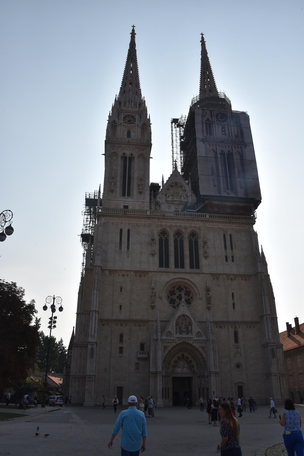 前面就是圣母大教堂,正面的建筑非常气派,几个谷仓式建筑加上瘦高的钟楼,错落有致,