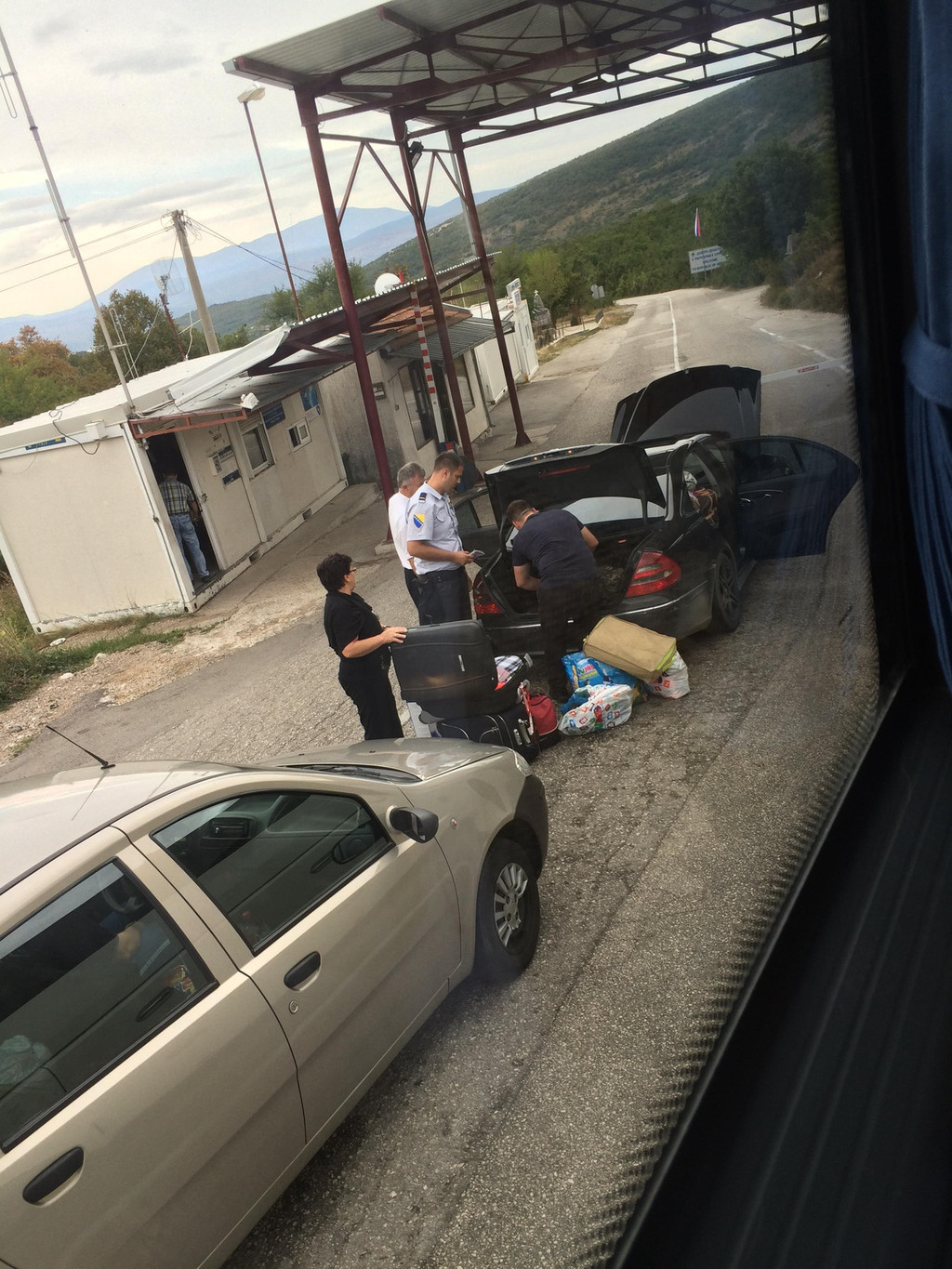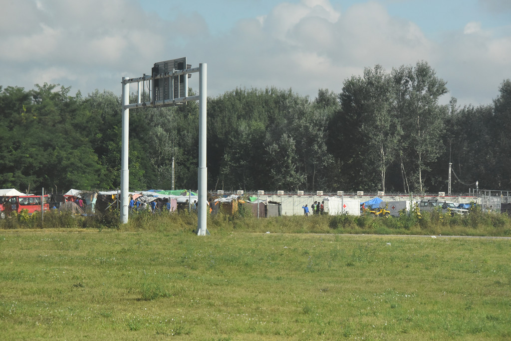 这里的通关方式是边境人员亲自上车收护照,下车查验盖章,通关结束。还算简单,等候期间看到在匈牙利一侧铁丝网外有一片棚子,还有红十字会的车,据说这就是难民,他们已经穿过了塞尔维亚的边境,他们想通过边界进入匈牙利进而转进德国,在匈牙利一侧被铁丝网拦截,他们的处境非常悲惨,家园被毁,无处可去。