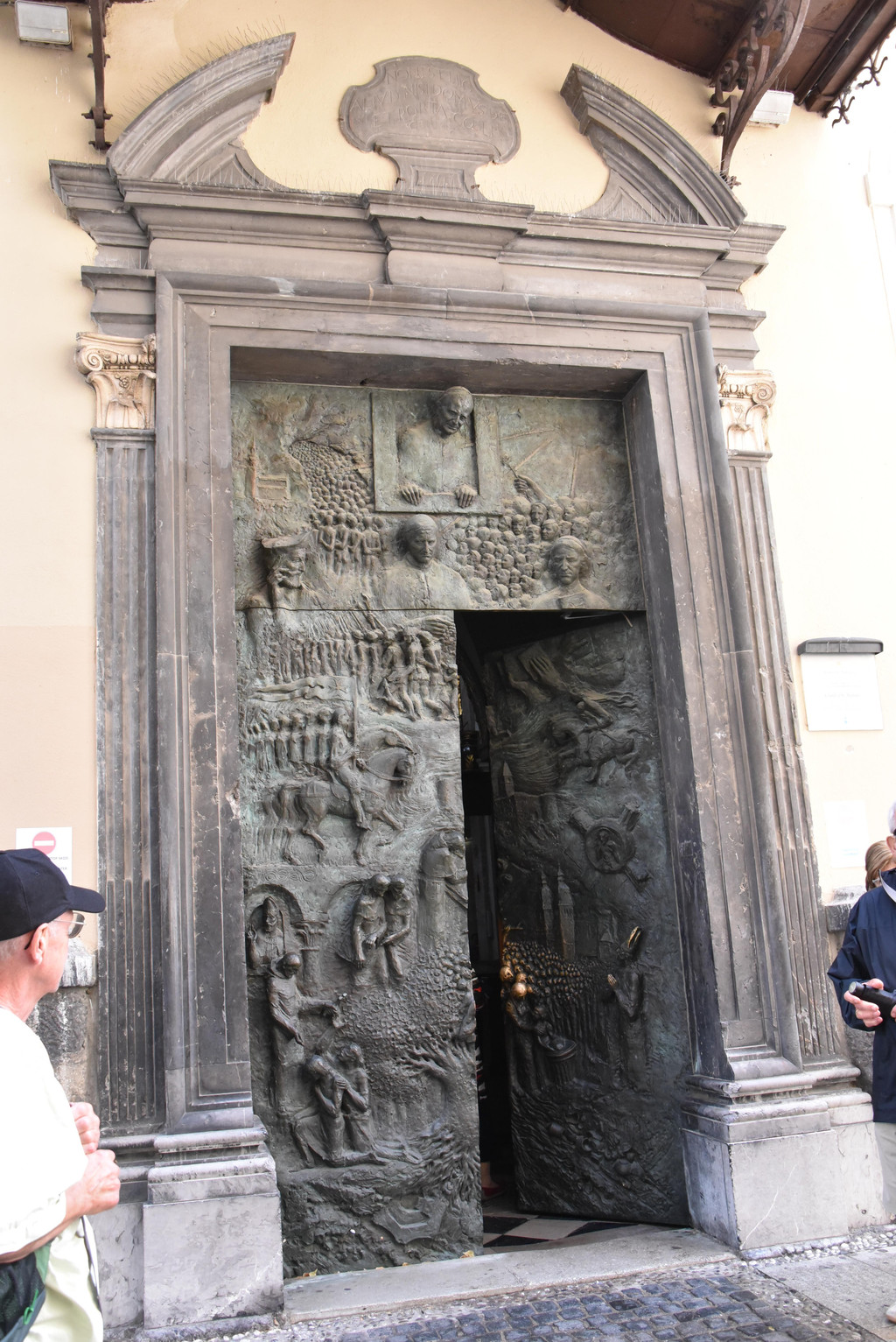 位于三桥斜对面的圣尼古拉斯教堂是必须要造访的景点,建于17世纪,它的铜铸大门很有特色,上面布满浮雕,每个到此的游客都会在这里站一会儿端详一下,它的把手处已经被人摸得锃亮,仔细看又是那些小人头,