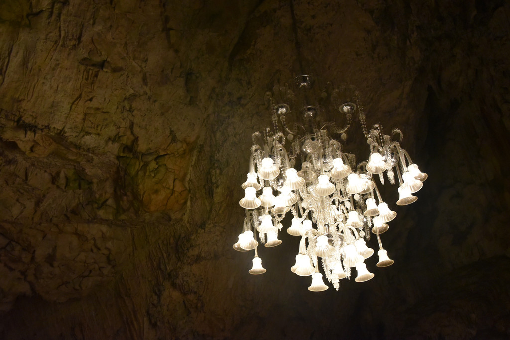前面还有水晶厅,灯光下所有的钟乳石都会发出闪闪的亮光,再前面还有什么厅听讲解器中已经记不住了,只是跟着感觉走吧,总是在一转身一挪步之间发现新的令人感叹的景色,有的地方满满的钟乳石各式各样,有的地方周边都是岩石,只有一根石针立在那里,