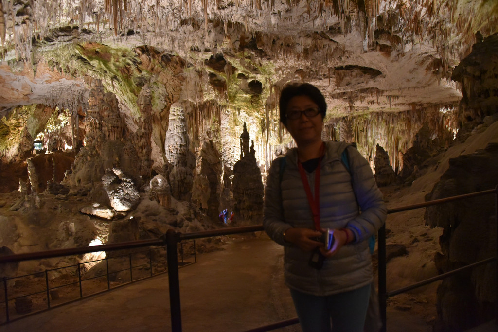 这里灯光只为照明,没有五颜六色的彩灯,更显得石洞质朴,顺着道路走,螺旋向上,这里是洞内的大厅,既宏伟又不空旷,因为大厅的中央是一座山,景观称其为高山,我们就是站在高山之巅,