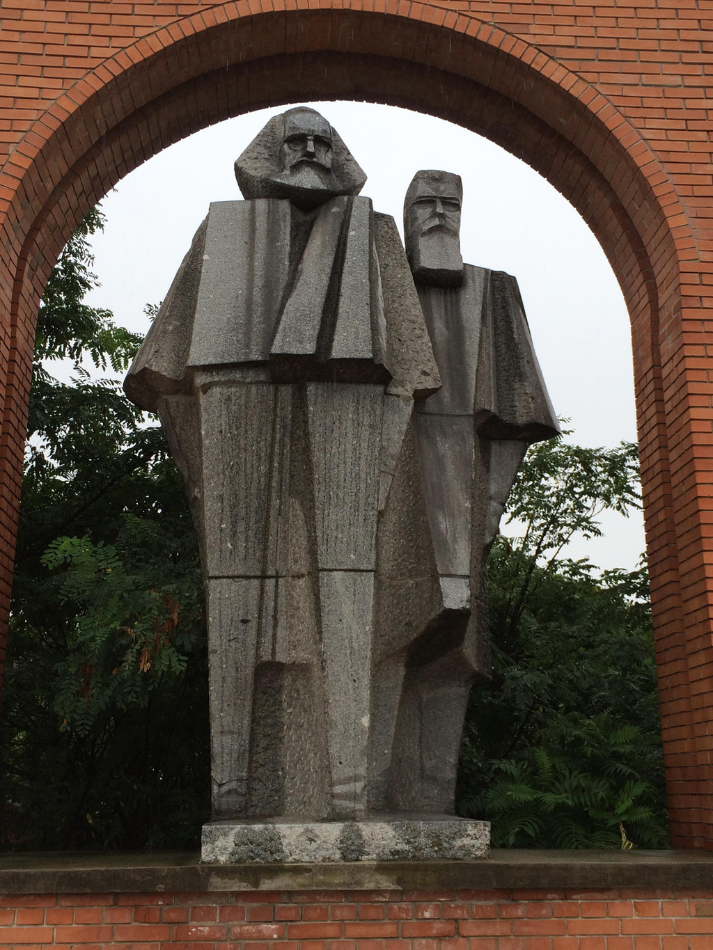 公园在郊外一个僻静的地方,1993年6月29日对外开放,这里展出的是匈牙利社会主义时期城内各处矗立的社会主义题材的雕像,园区大门其实就是红砖砌成的一面墙,中间三个门洞,左侧的一个是出入口,在大门左右的红砖墙上各掏了一个大大的窗口,右边站着马克思和恩格斯雕像,左边站着列宁的雕像,