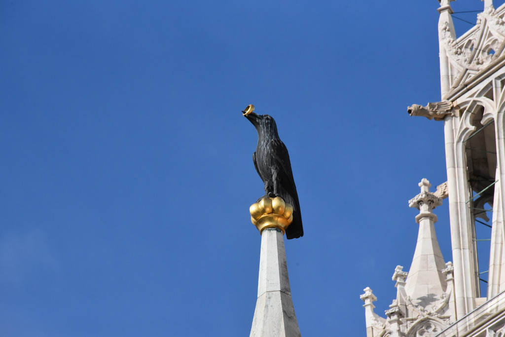 教堂的一个尖顶上蹲着一直乌鸦,乌鸦嘴上衔着一枚金戒指,据说在马加什国王婚礼上正要戴戒指,一只乌鸦飞过来将戒指衔走,后来知道这是有人要陷害国王,戒指上有毒,为纪念这只救了国王的乌鸦就做了一只衔着戒指的雕像放到教堂的尖顶上。
