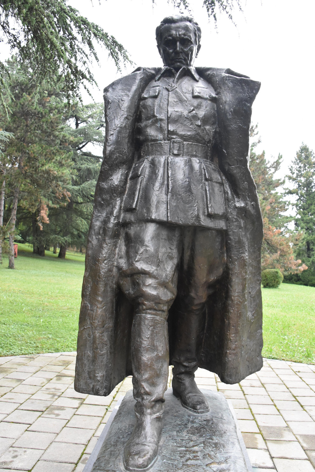 铁托逝世后,南斯拉夫为他做了一尊雕像,复制了很多,凡是他的纪念地都有这尊雕像,是铁托早期的形象,铁托身穿军装,脚蹬皮靴,披着大衣做思考状,就像正在思考着南斯拉夫的未来,这里就有一尊。