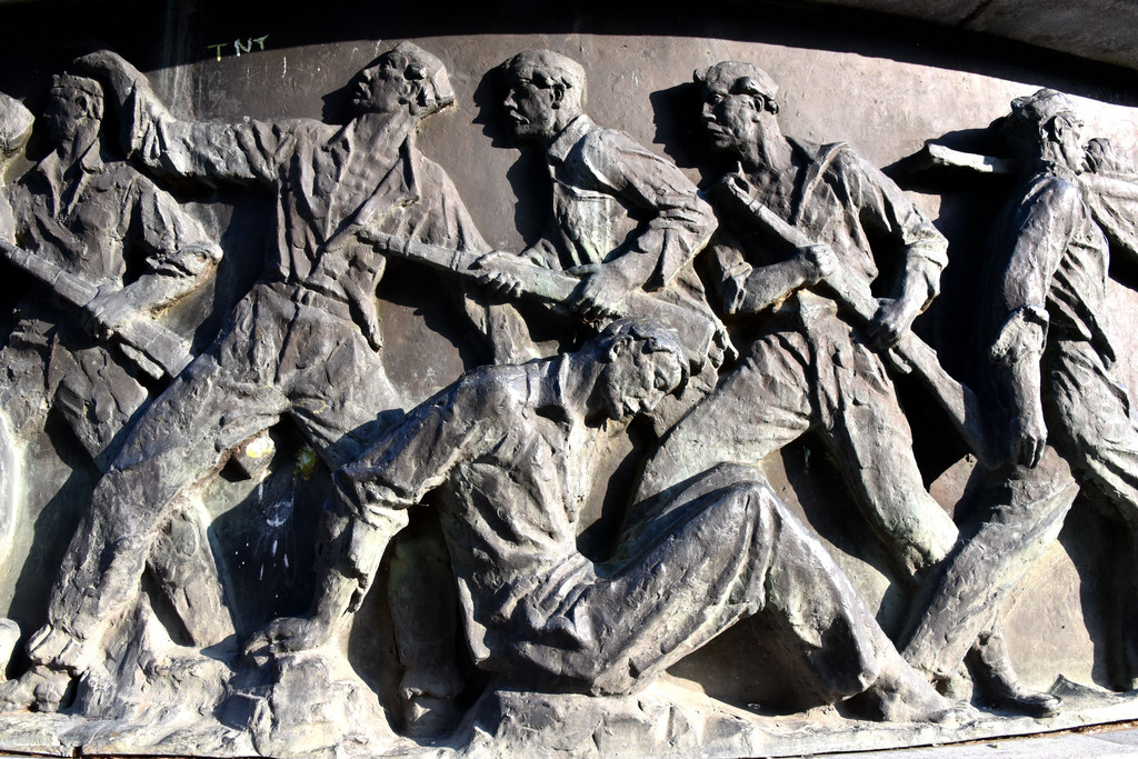 广场的右侧是几组雕像,二战纪念雕像,其中一组现代群雕,除了领头的有鼻子有眼,其他都是抽象的。