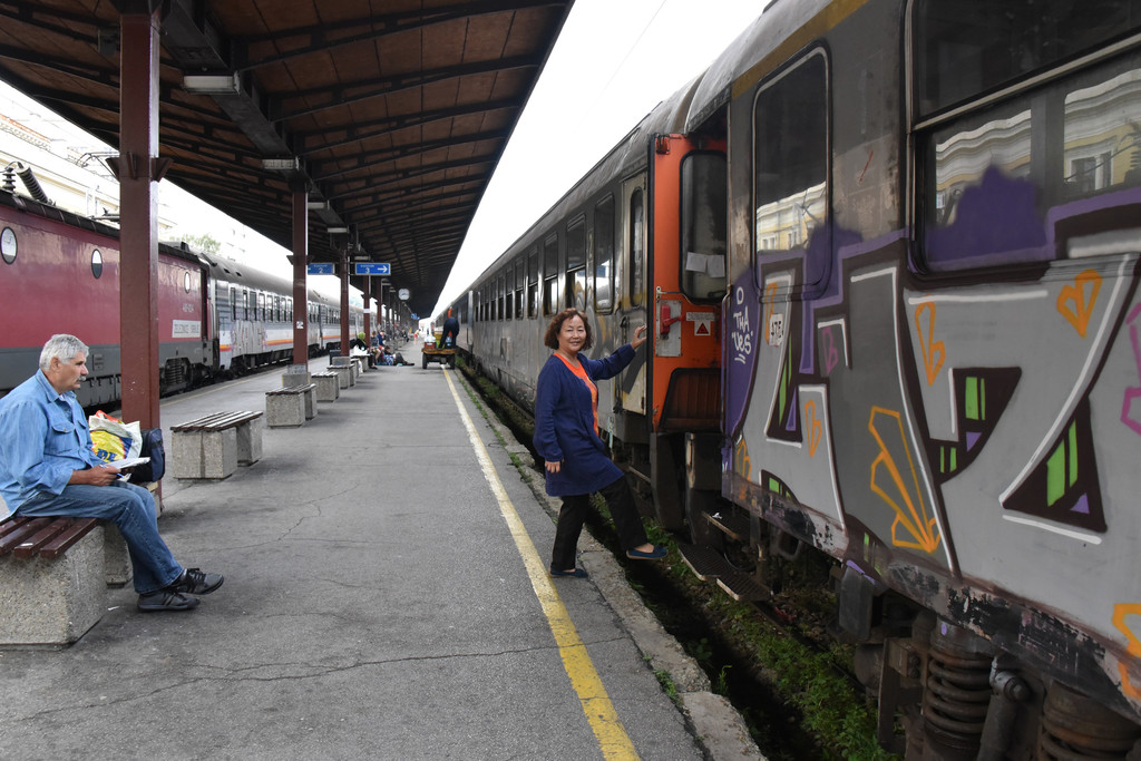 早上出发前去酒店对面的中央火车站看看,火车站外观是一个中规中矩的希腊罗马式建筑,进入大门就是售票大厅,按照数字应该是有18个售票窗口,进站口没有检票的,可以直接进入露天站台区,有几列火车等候发车,这些火车都是很老式破旧的感觉,车身上满是涂鸦,随便登上一节车厢的车门照相,没有人管,很随意,车站内没有太多的人候车,想想我们早班地铁和公交车,这里的人太幸福了。