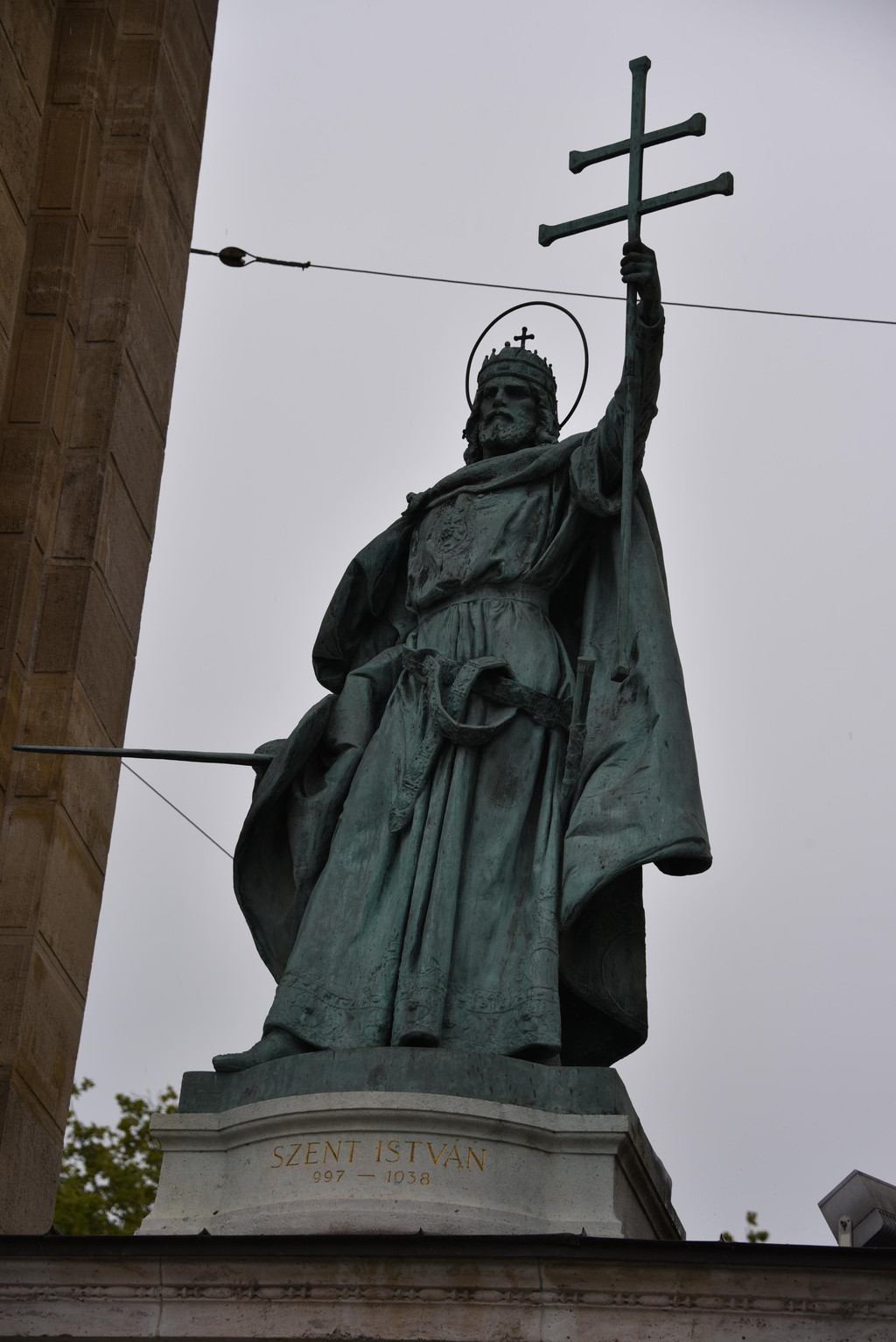 后面两侧各是对称的罗马式柱廊,有14个人物雕像,是匈牙利定居1000年来的历代皇帝及名人雕像,左面的第一位就是开国皇帝圣伊斯特万。