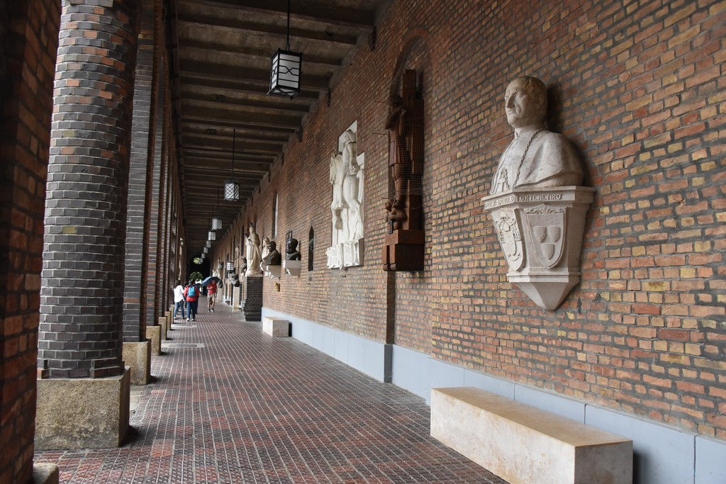 走出教堂,这里是一个广场,三面是围廊,围廊的壁上有很多人物雕像,有的半身,有的全身,古老现代都有,这里共有70尊,都是当地的名人,包括神职人员、作家、政治家、作曲家、艺术家等等,是他们的民族精神象征,这里翻译成中文就是“万神殿”。