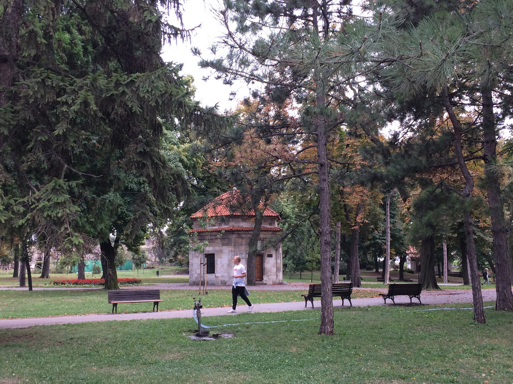 该去拜访一下铁托了。铁托全名约瑟普 布罗茨 铁托,生于1892年5月25日,克罗地亚人,前南斯拉夫社会主义共和国总统,二战期间,铁托组建了游击队,领导南共和人民进行反法西斯斗争并取得胜利,战后摆脱苏联控制,按照“南斯拉夫人的南斯拉夫”原则建设南斯拉夫,东西方通吃游刃有余,铁托是铁腕式人物,在他的领导下,南斯拉夫这个多民族多宗教信仰的国家被统一在一起,另一方面铁托生前追求个人生活享受,在南斯拉夫每个共和国中都建有行宫,有私人岛屿,动物园,豪车但同时也给他的国民带来希望,获得国际上普遍尊重,也受到南斯拉夫人民的爱戴。铁托于1980年5月4日去世,去世后来自全世界128个国家的209个代表团参加了他的葬礼。铁托死后虽获殊荣但并没有建立大型陵墓,只是将他葬在位于贝尔格莱德乌日策大街的总统官邸的花房中,现在称为花宫。铁托的墓园分为博物馆和墓地两部分,走过一片高大的树林,缓坡向上,走过喷水池,上面是一个六边形平台,中心是六个向中心倾斜的花岗岩石墩,大概象征着南斯拉夫的六个联邦共和国,