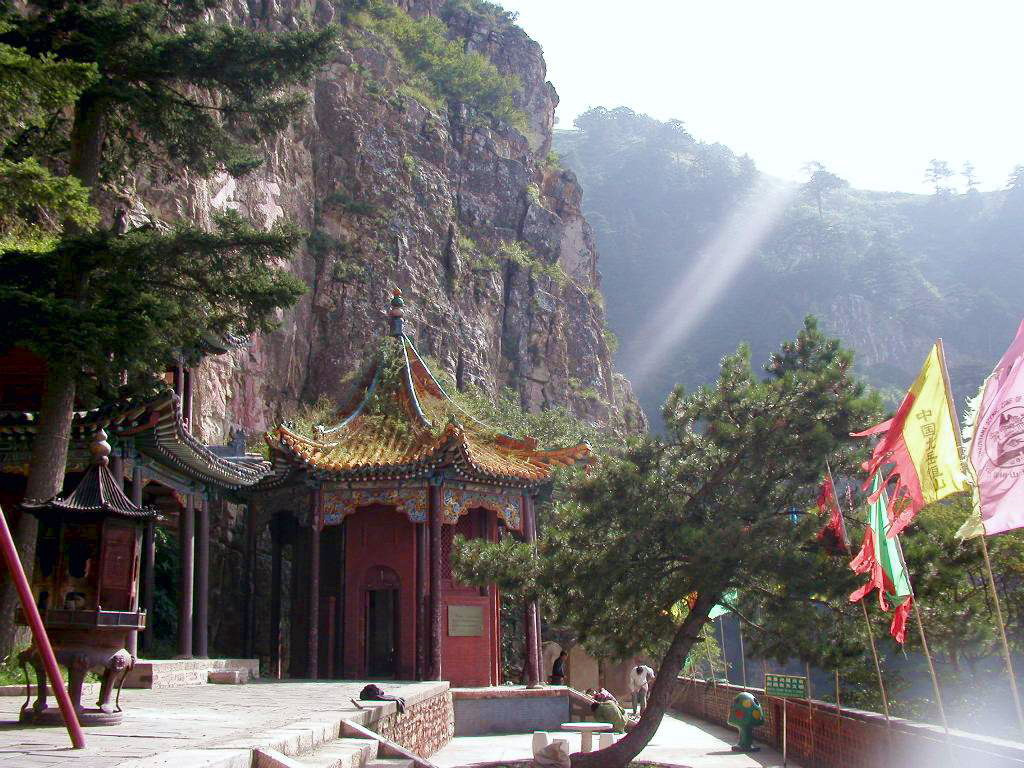这里有一寝宫,建于北魏,距今1500多年了,是古北岳庙。在这里我们遇上了一个住在这里的道长,他有七十多岁,白发,白须,却因深山空气好,满面红光,身轻体健;他看我们对这里很有兴趣,就当起了义务讲解。他告诉我们这里的神在文化大革命的时候没有被破坏,是因为它太灵了,所以红卫兵没有敢动这些神仙。他当时被赶下山,每天学习,挨斗,但终究还是回到山上了。