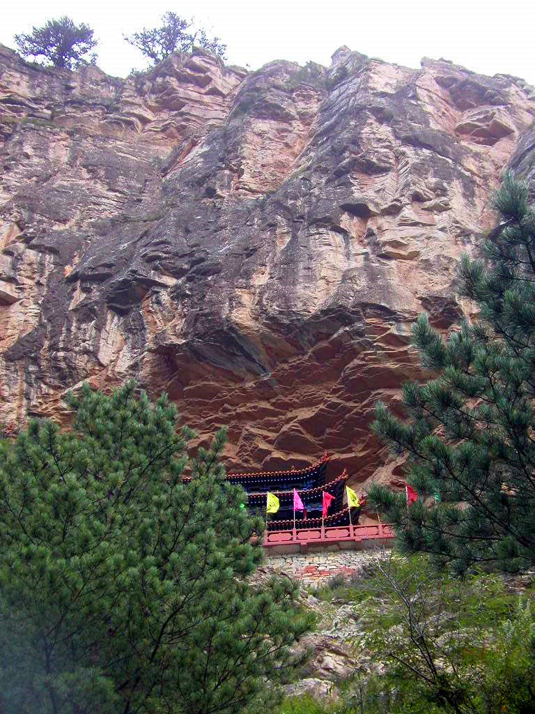 得一庵原住得一道士,明神宗时到恒山修行,活到康熙年间,寿高140多岁。阎道祠住的是他的两个徒弟。这两座庙修在悬崖上,虽不象悬空寺那样用木棍支撑,却亭台楼阁,玲珑别致,很有情趣。顺路向前,就看到了以幽静奇妙著称的“飞石窟”,这是恒山18景中的“幽窟飞石”。飞石窟内外的岩壁上,刻有历代名士的题刻,增色不少。