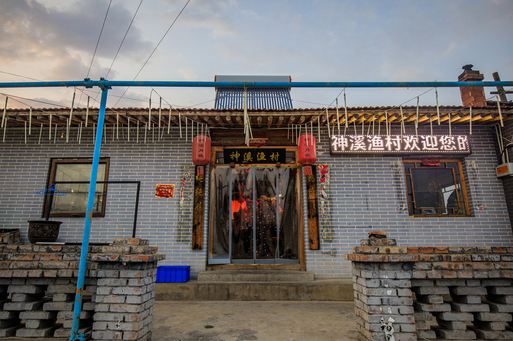 待夕阳完全褪去后,经过当地司机的推荐,我们选择在村中的“神溪渔村”农家乐用餐。