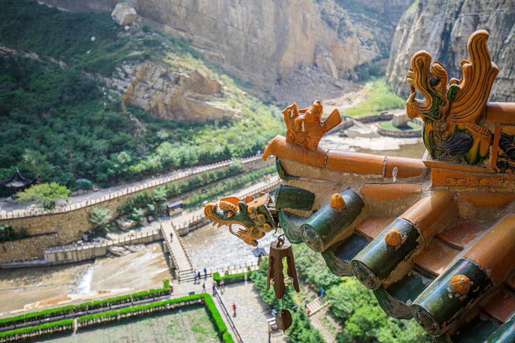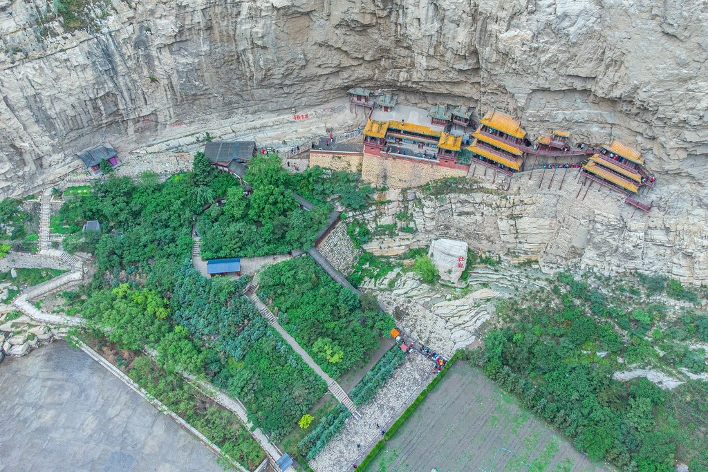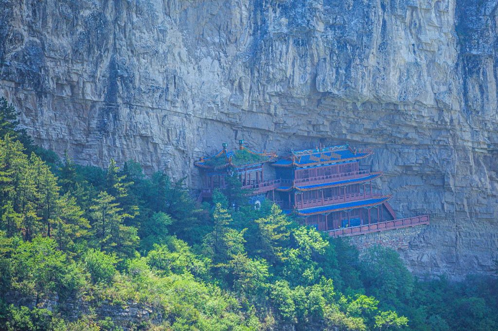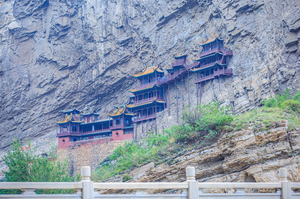 悬空寺的奇迹也是选址的奇迹。它的选址烘托了“悬空”效果,还为悬空寺增添了许多优势。