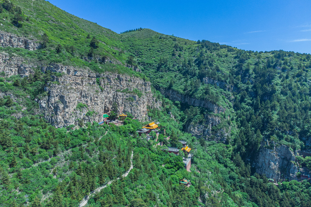 深处同样有一个规模较小的悬空寺,当然无论从规模还是精美程度无法与真正的悬空寺相媲美,可见当时开山凿壁建寺也是僧人比较常见躲避战火的办法。