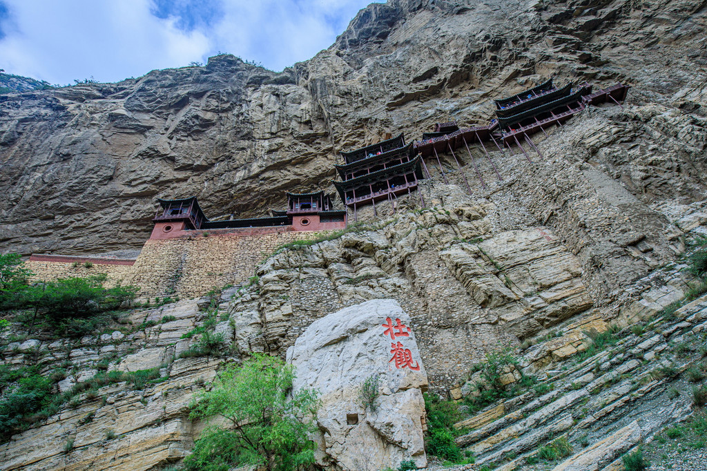 悬空寺位于大同市浑源县恒山翠屏峰绝壁中,距大同市区近65公里。寺庙始建于北魏晚期,是国内仅存的儒、释、道三教合一的寺庙。悬空寺原叫“玄空阁”,“玄”取自于 中国 道教教理,“空”则来源于佛教的教理,后改名为“悬空寺”,是因为整座寺院就像悬挂在悬崖上,在汉语中,“悬”与“玄”同音,因此得名。