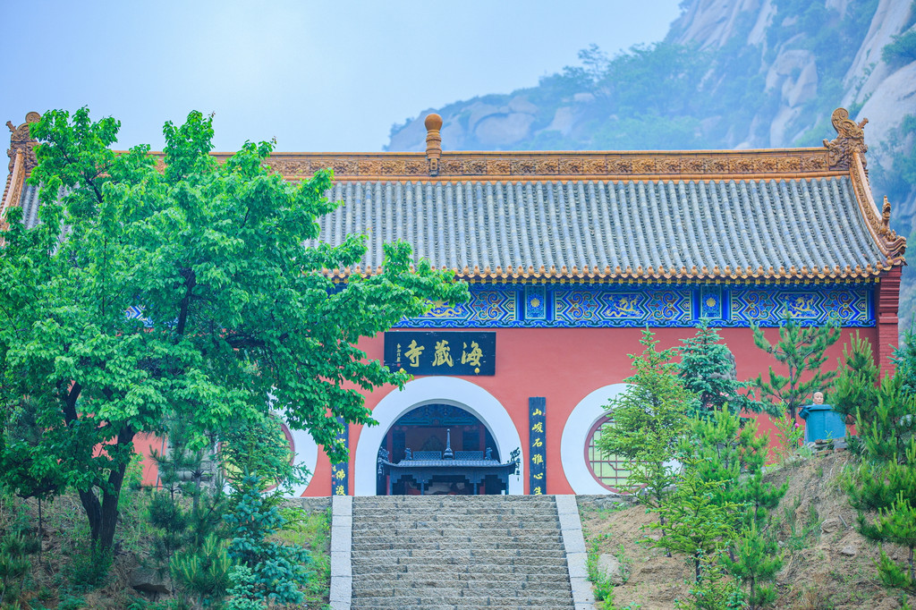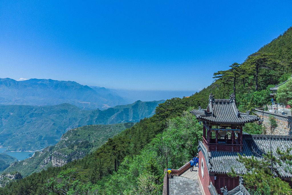 可以选择从这里继续向上直接抵达天峰岭,也可以选择向右走游览庙宇群。