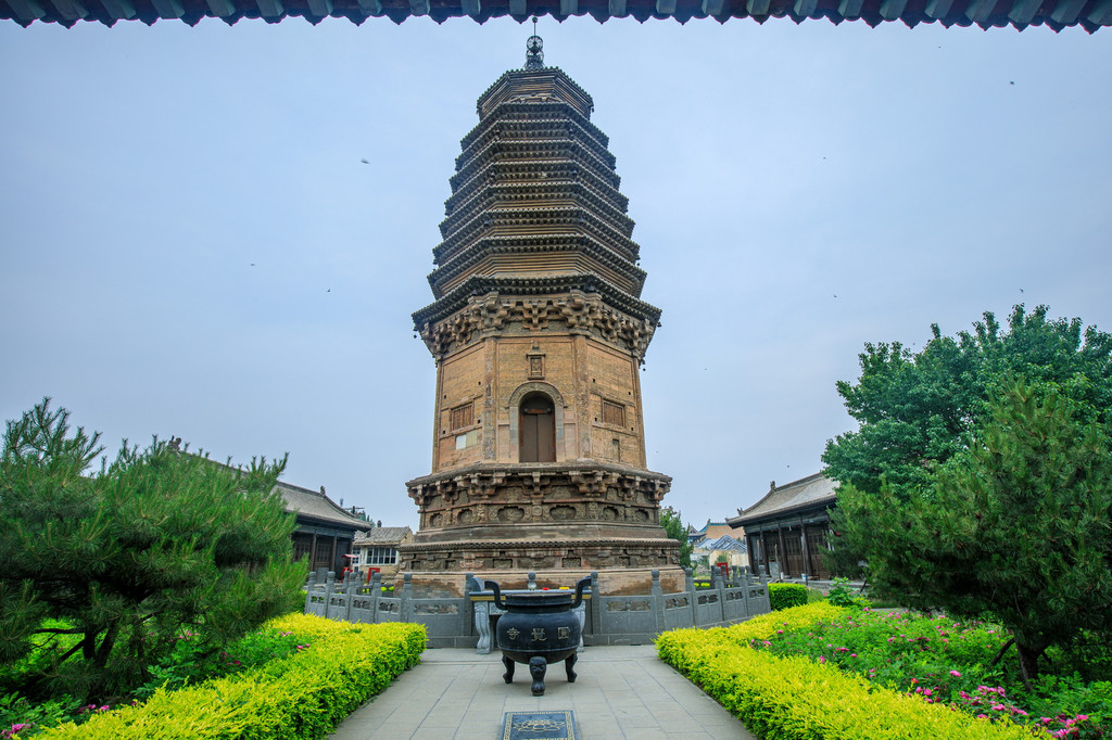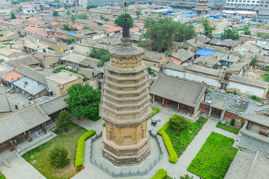 圆觉寺塔,是大同地区现存唯一的一座密檐塔,八百多年来,它一直屹立在恒山北麓浑源县县城内的圆觉寺之中,风雨不动,蔚为壮观。